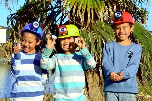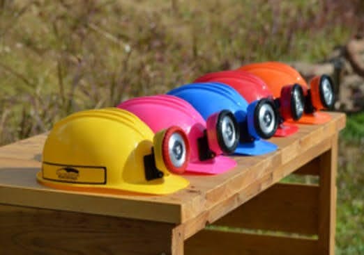宝石探し体験後は、カラフルな「マイニングヘルメット」をかぶって記念撮影も!ヘルメットは無料で貸し出しします!