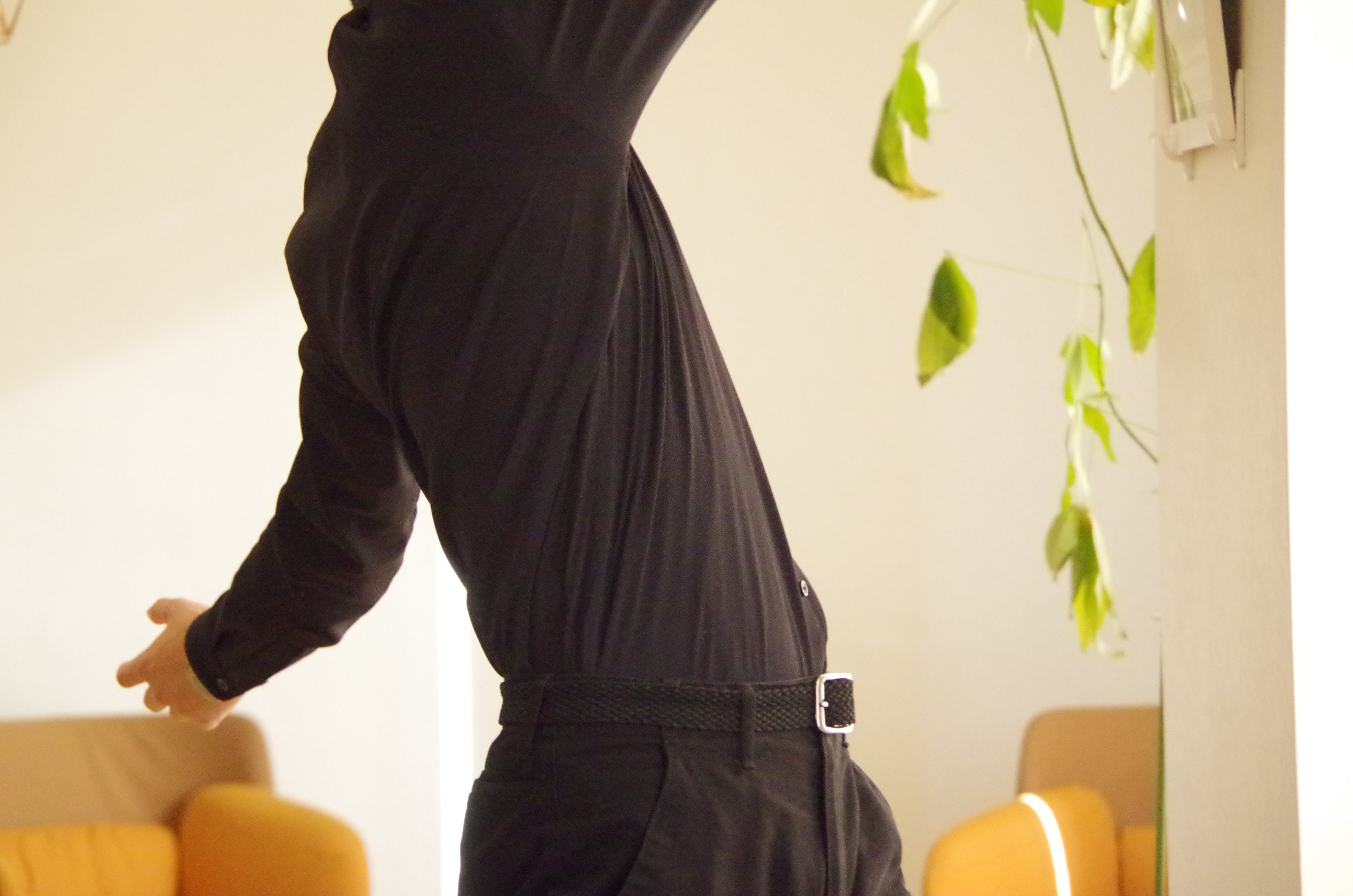 なので、ほら!こんなに万歳をしても、全くシャツが出てきません!