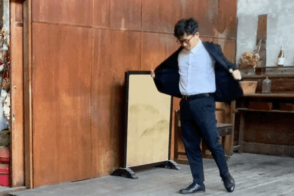 襟付きバージョン ライトグレー着用無事出勤をして、さっそく仕事!