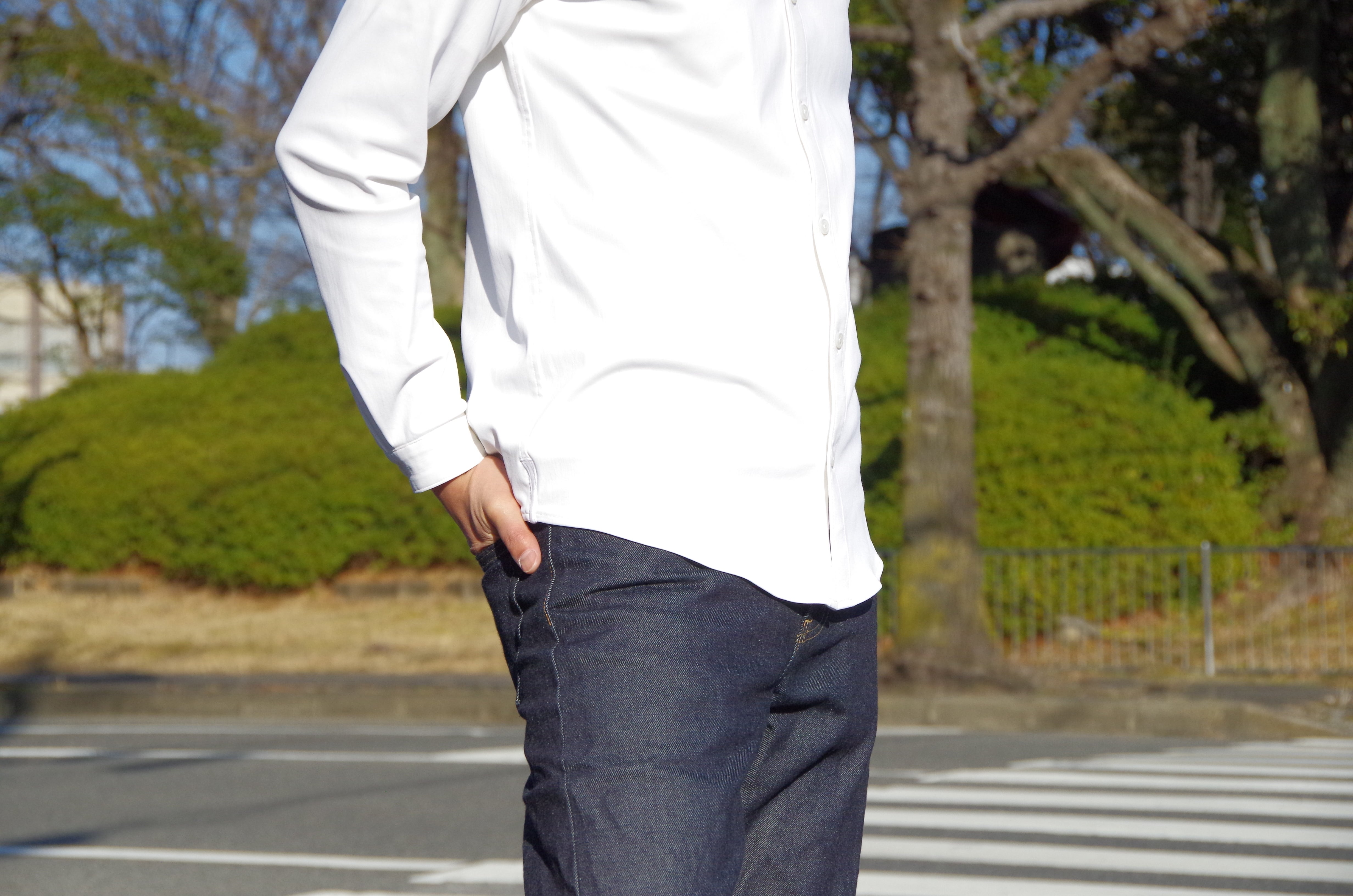 今回開発したシャツは一見細身のノーマルシャツに見えますが、