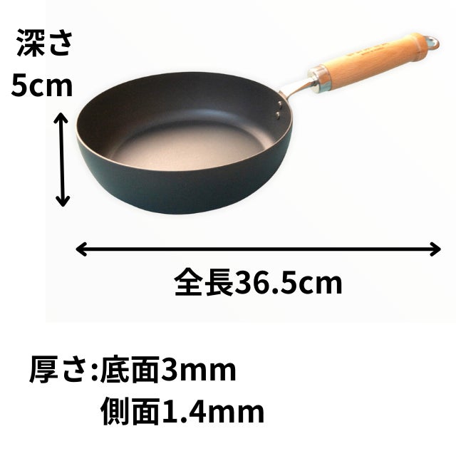 熱伝導が良く、丈夫でありながら、独自のへら絞り加工により1kg未満の軽さを実現しました。