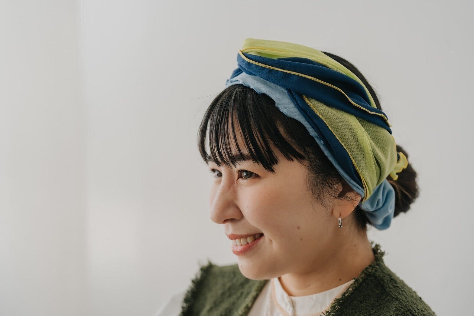 リボン部分の長さを短くしたり、帽子になる生地を伸びる素材にしたり、ゴムの部分を調整可能にしたりと…これまでのターボウをより付けやすく、そしてフィットできる形に改良した新しいターボウとなります。