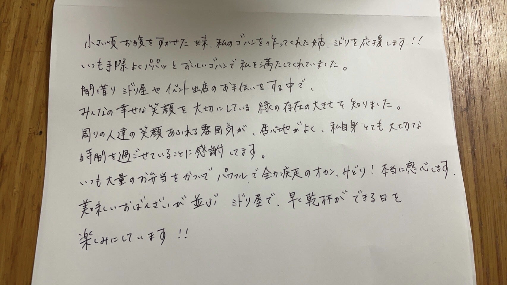 「緑ちゃんの周りにはいつも素敵な仲間が集まってて、ミドリ屋で過ごす時間が凄く楽しいねん。」
