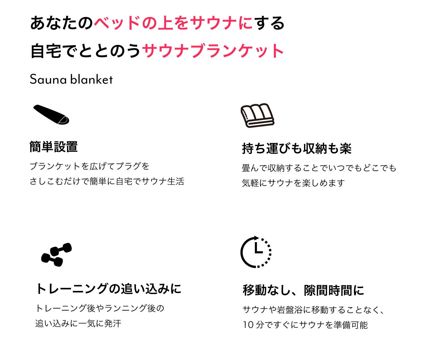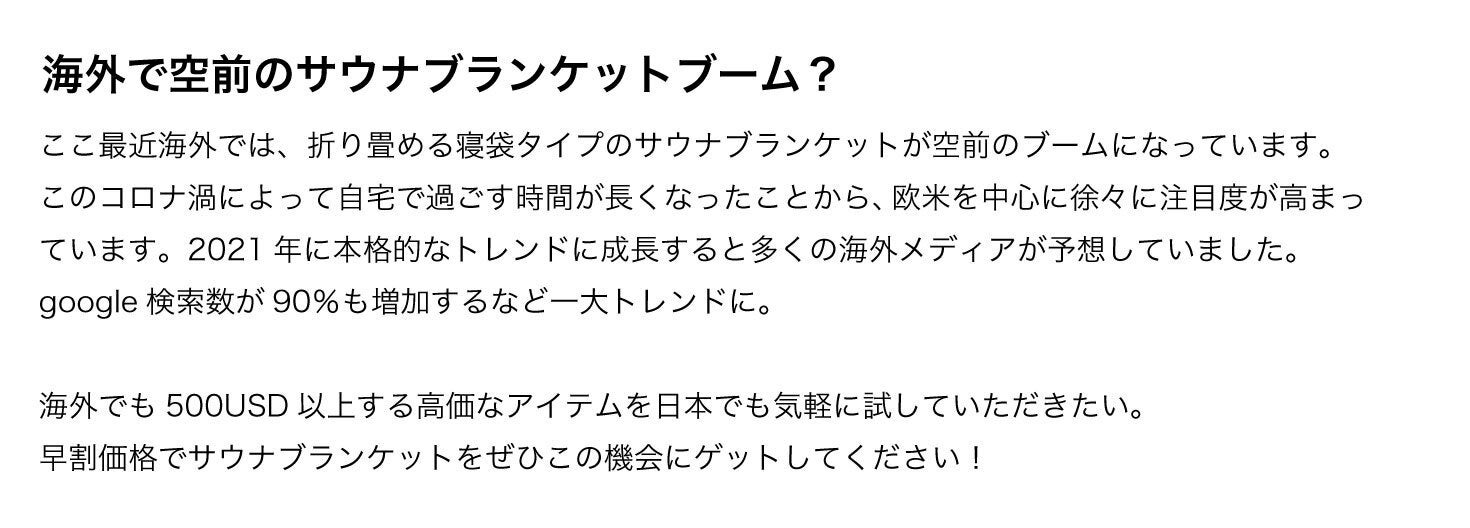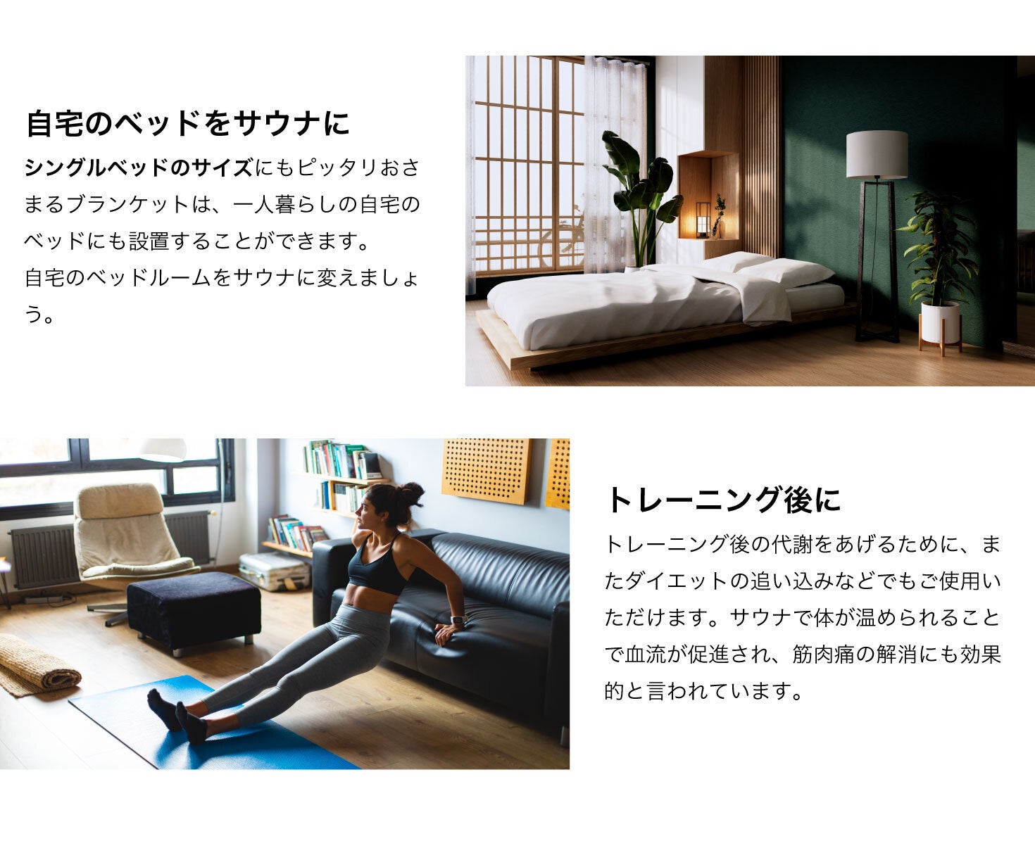 海外のサウナブランケットは金額も高く、個人輸入するにも大変面倒が多い現状です。日本でも気軽に試せるサウナブランケットを試していただきたいと思っております。