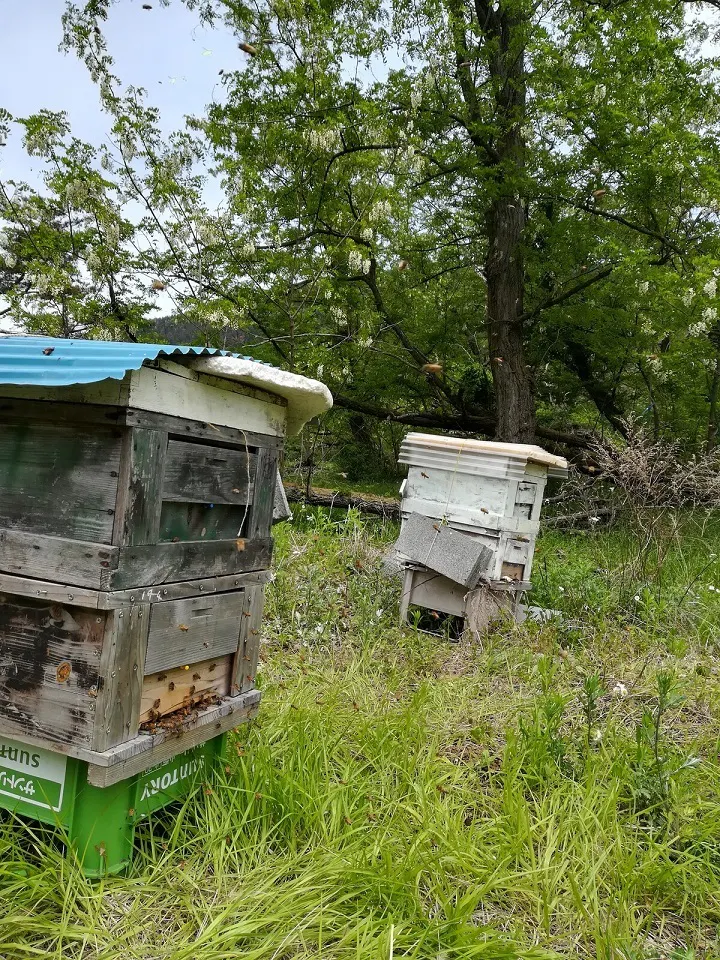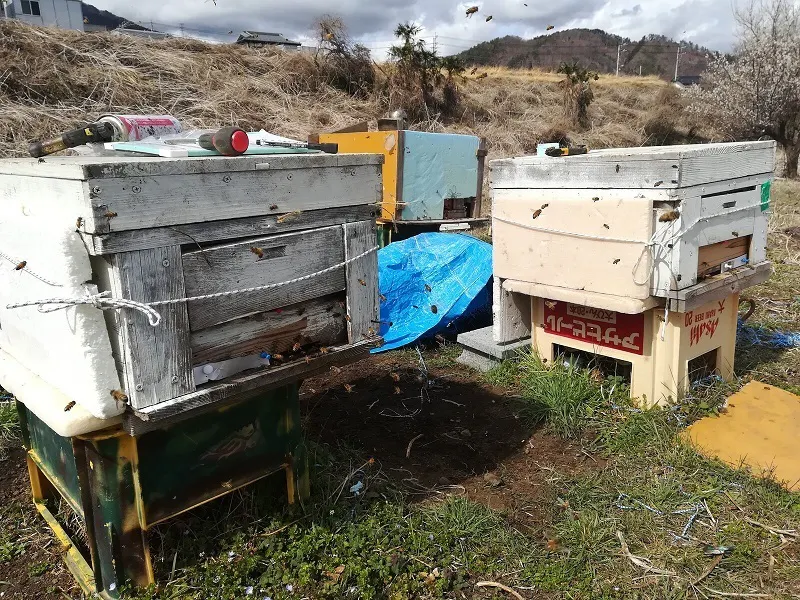 先ほど少し触れましたが、常時ミツバチ(みつばち)の群れ(巣箱)が10~13個ほどあるのですが