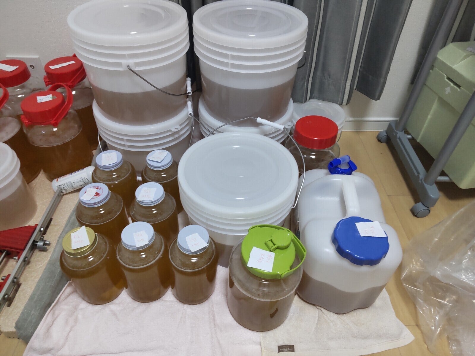 少し養蜂が落ち着いたのでハチミツ搾りの様子を報告したいと思いますまずは巣箱内にある巣脾(ミツバチがハチミツや花粉を溜めたり卵を産んだりする物)木枠の中にハチミツが溜まります、巣箱の中にこの巣脾が10枚入りますその巣箱を二段、三段と重ねて、一階と二階の間に女王は通れず働き蜂は通れる隔王板(ザル・網)を着ける事により一階は産卵、花粉を溜めて、二階三階にはハチミツのみが溜まるようにします多きときは巣箱に30枚巣脾が入りますご支援して購入した群れは3枚の巣脾と女王と働き蜂を3群です何とか今年の採蜜のタイミングまでにハチを増やせて良かったです巣脾を遠心分離機に入れて手でグルグル回すとハチミツがタンクに溜まりますザルで3回ろ過した後にメッシュでろ過をしますこれでハチミツ搾りは終了です。この容器から販売用の各種のビンにはちみつを詰めると商品になります完熟しているハチミツのみを搾っているので糖度は82%前後と非常に高いです糖度を上げるために砂糖や甘味料を加えたり、ハチミツを加熱して水分を飛ばす事は全くしていません。逆に量を増やすために水を加えたり、未成熟の薄いハチミツを加えたりもしていません。本物の『純粋はちみつ』なので安心して食べて下さい。今回の活動報告を最後に一区切りしたいと思います。改めて、ご支援を頂きありがとうございました。ハチミツはネットショップ『みのる養蜂園BASE店』で販売しています良かったらご覧くださいhttps://minoru38.official.ec/ありがとうございました。