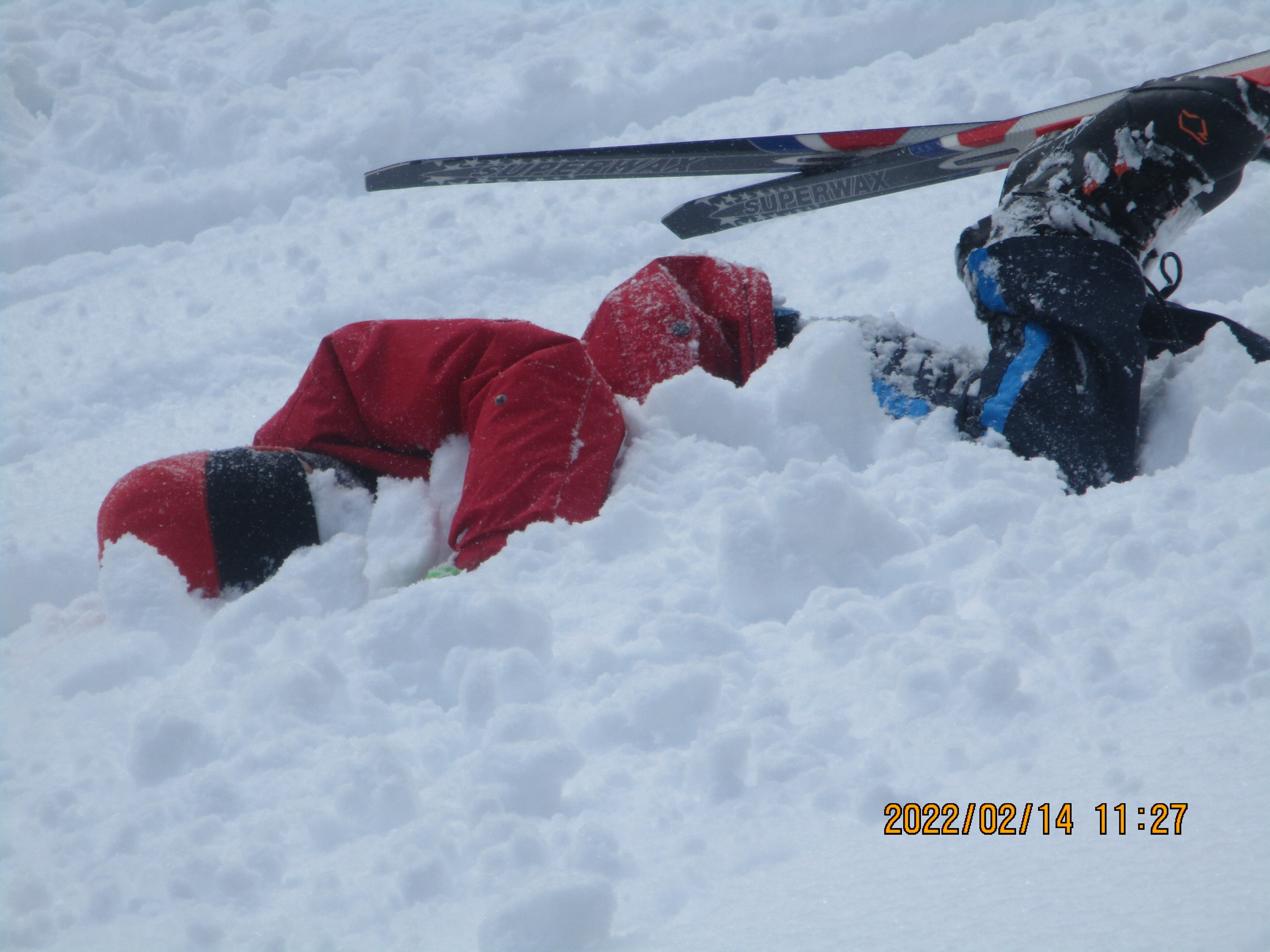 ですが、裏山でクロスをやるのはすごく難しく、みんな大きくこけて、顔面から雪に突っ込んでいきました(-_-;)