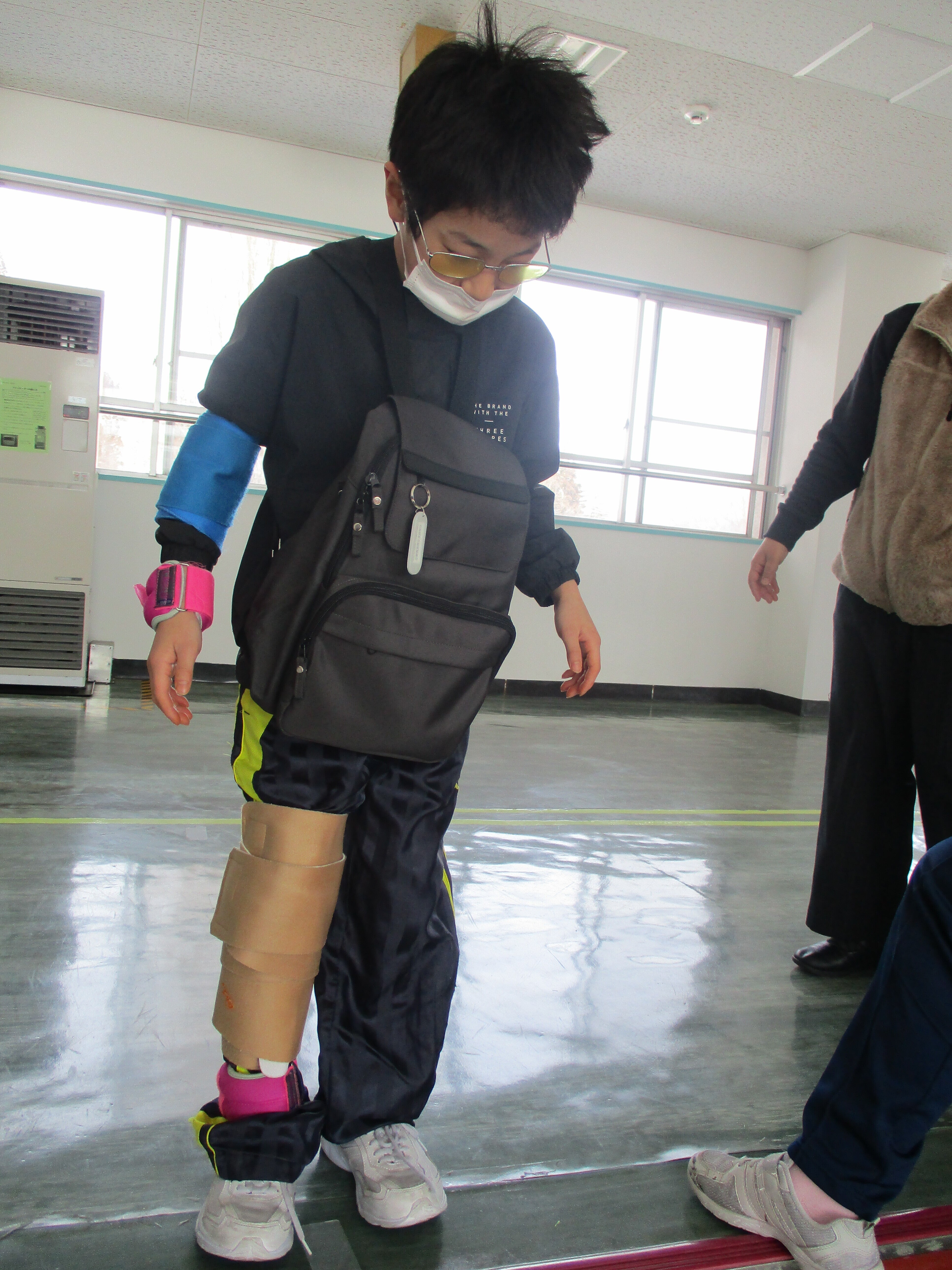 今日は、家庭科の授業で老人体験グッズで、おじいちゃん おばあちゃんになってみました。