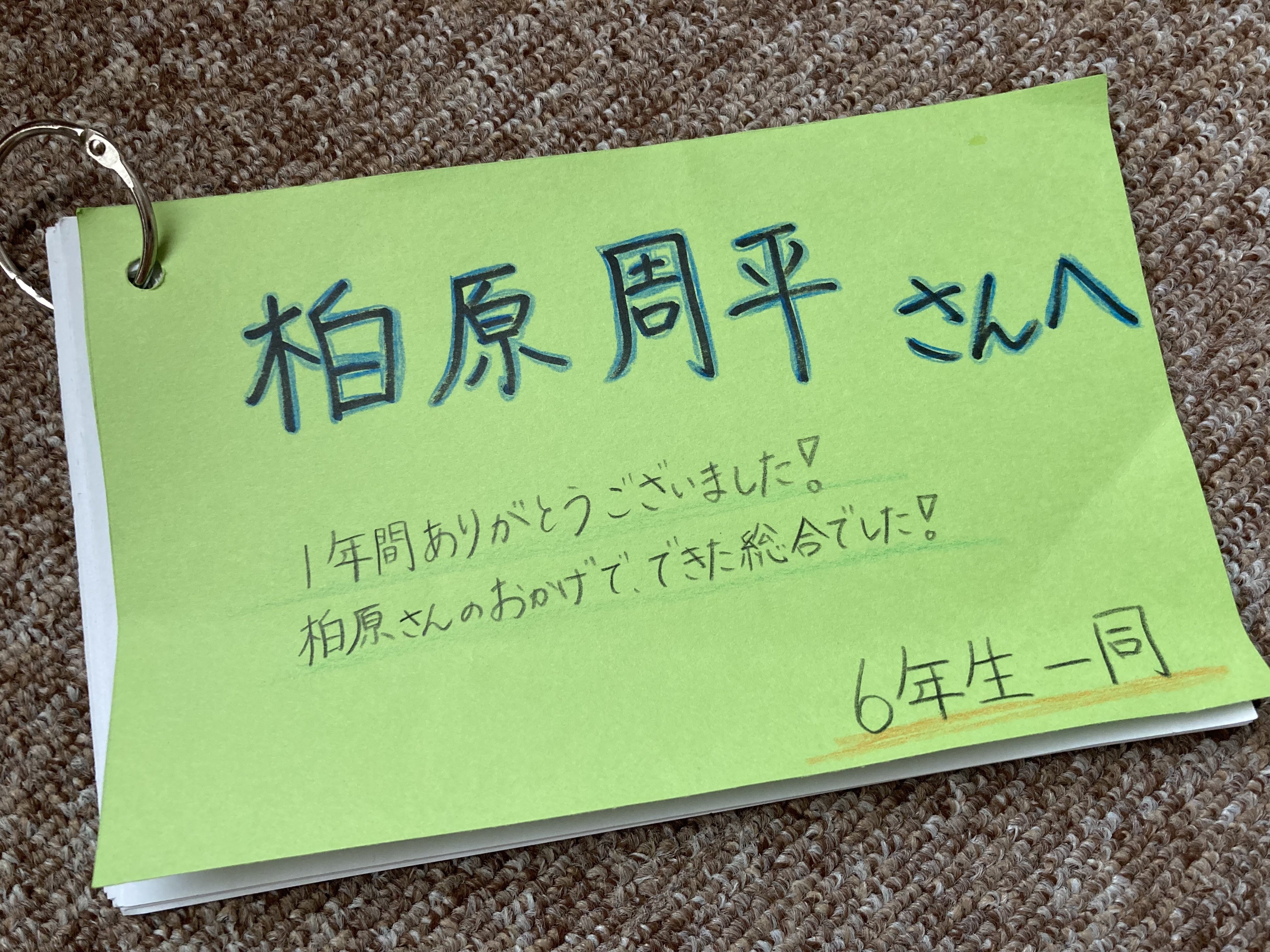 作業の終わりに卒業生全員から感謝と共にプレゼントをもらいました。