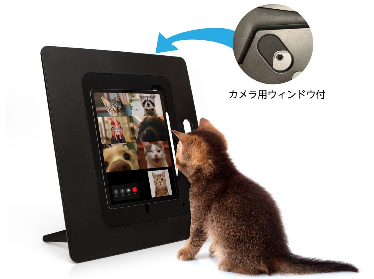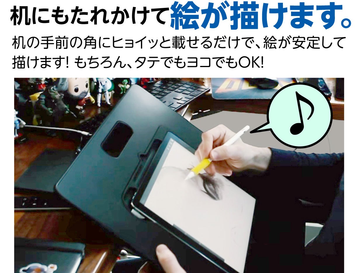 ポートレートや、似顔絵を描く時なら、背を高く立たせることも出来ます。iPadカメラレンズ用窓も裏面には開いており、ビデオ通話や下描き用の画像撮影もできます。