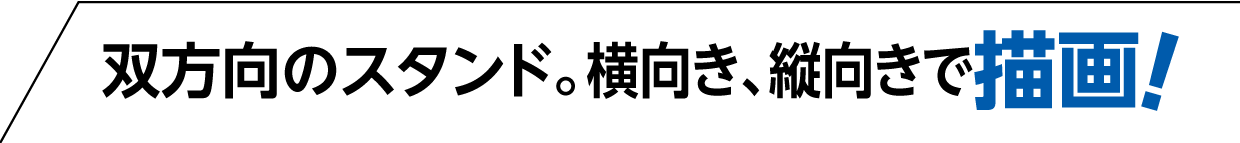 A:スケッチブック・プロは、膝の上や机の上、テーブルの端やイーゼルに立てかけて、簡単に回転させて使えるように設計されています。また、縦向きの脚を追加することで、右利き、左利きのどちらの方でも縦向きに立てることができます。