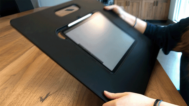 試行錯誤の結果、iPadの周囲に完全にフラットな描画面を実現することに成功しました。この滑らかなワークスペースは、描画をより快適にサポートすることができます。