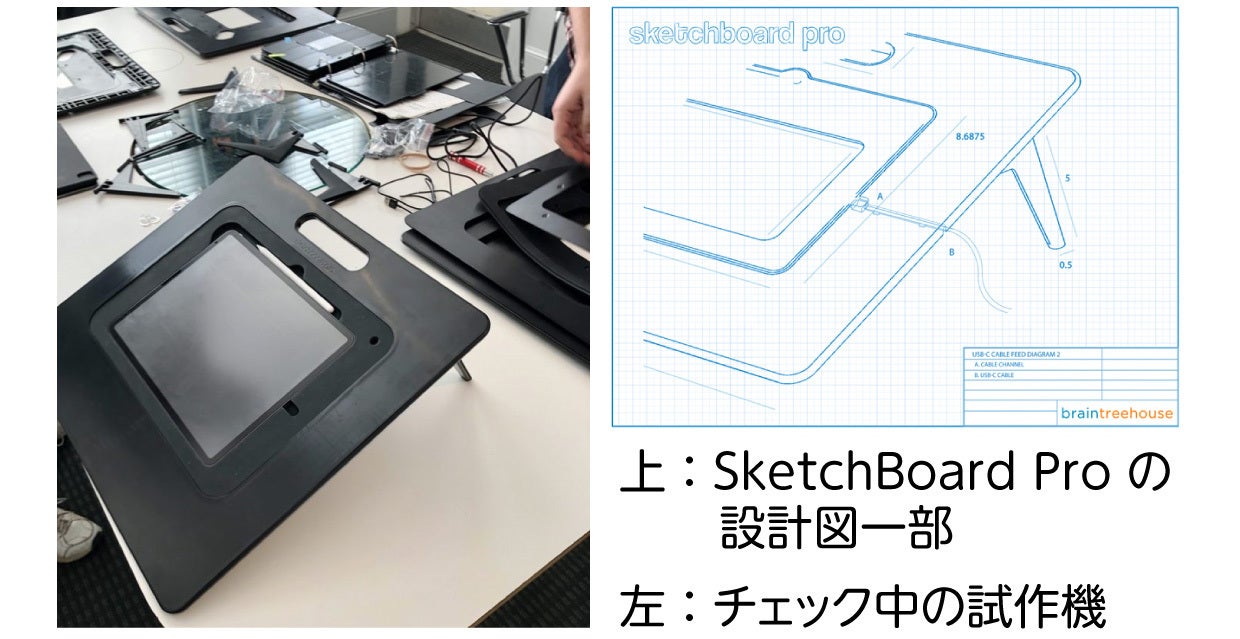 そして、机、ソファ、床など、どこからでもプロの絵を描けるように、“SketchBoard Pro”のプロトタイプが出来上がり、改良を重ねる事で現在の形に至りました。