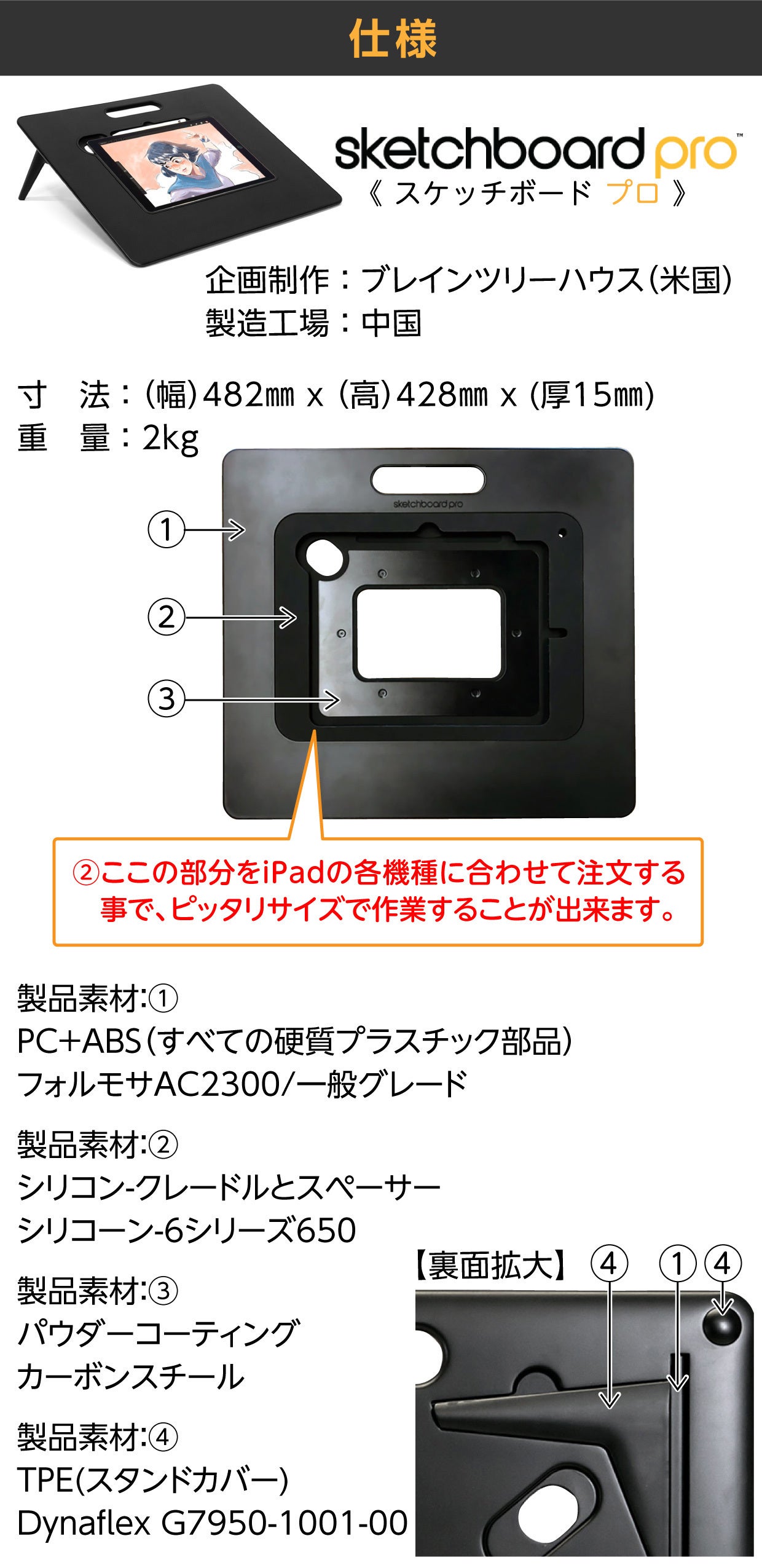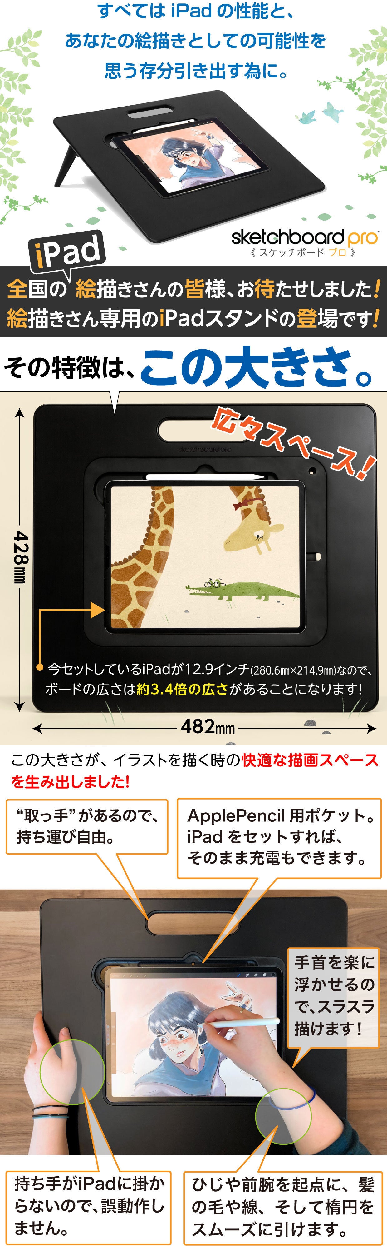 “SketchBoard Pro”は、学校でよく使った “画板 ”をモデルに、iPadでイラストやコミックなど、絵を描く作業向けに特化して作り上げた、ボード型スタンドです。