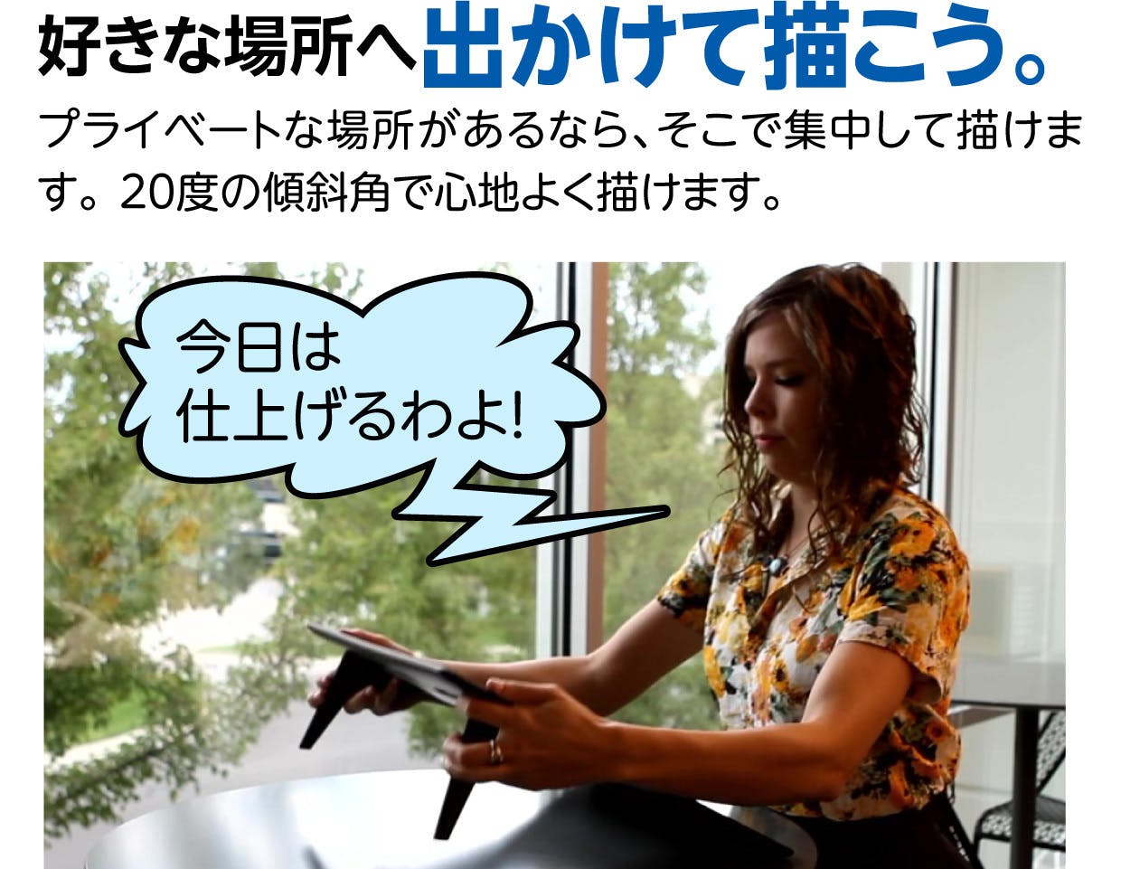 製図板やテーブルの上など、多くのアーティストの作業環境にフィットするように設計されています。