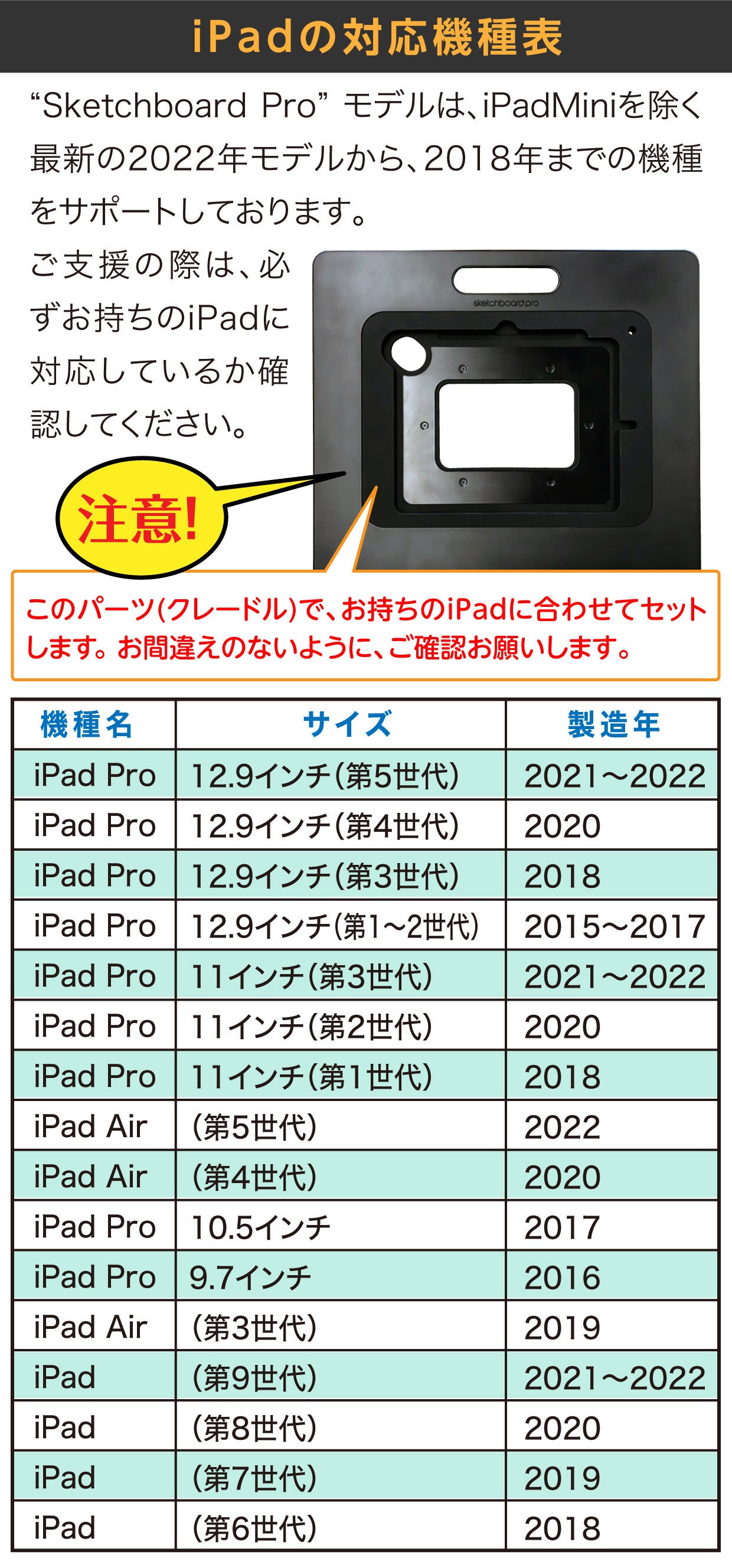 Q2:どのようなiPadモデルに対応していますか?