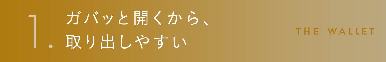 THE WALLETでは、小銭もお札もカードもスムーズに取り出せるように、マチの部分を広めにし、ガバッと開いて取り出しやすい独自の設計にしています。