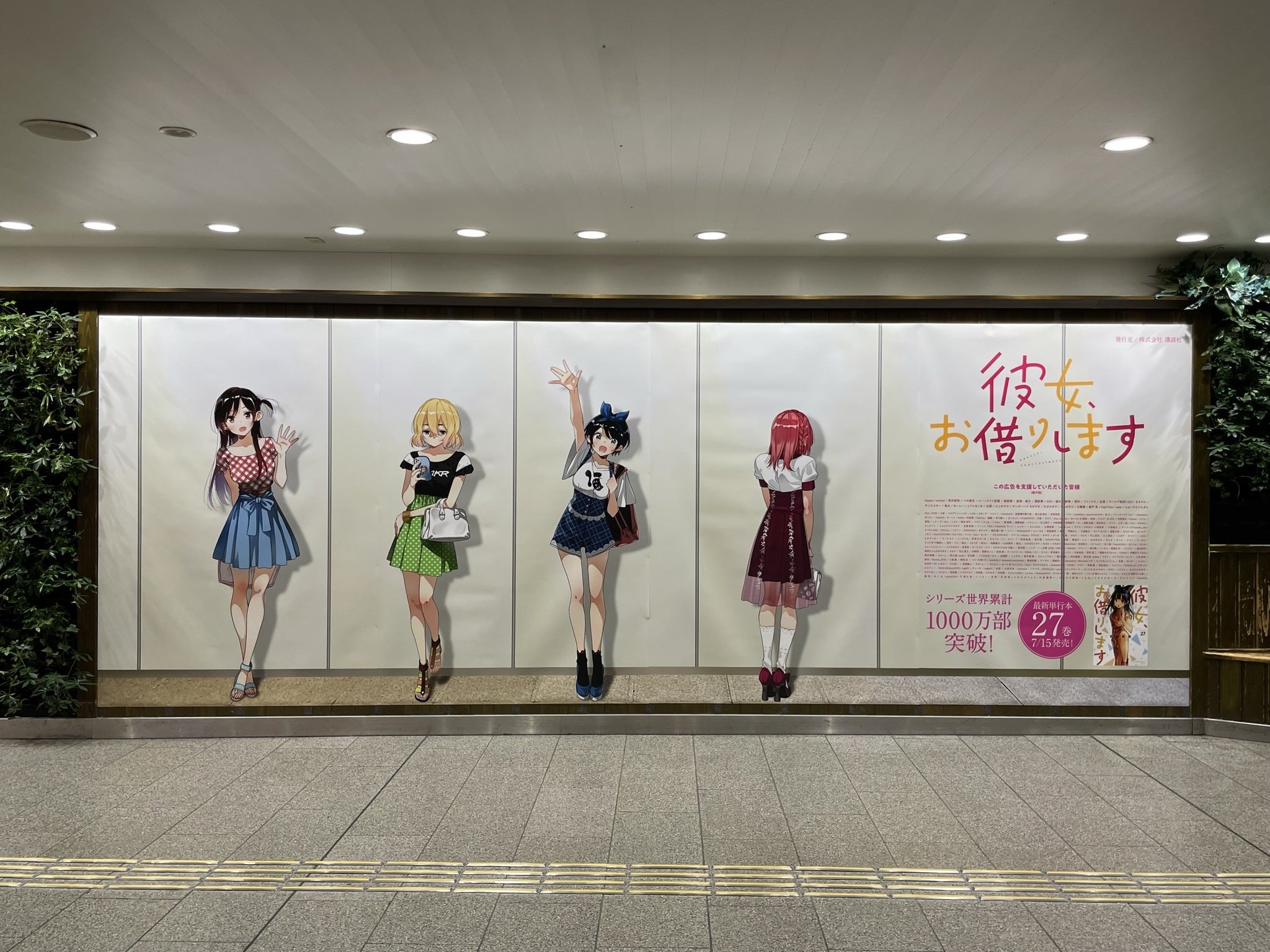 『彼女、お借りします』クラウドファンディングプロジェクトにご支援ありがとうございます、運営スタッフです。本日(8/8)より阪急大阪梅田駅にて、『彼女、お借りします』ヒロインとの待ち合わせ広告が掲載されました。東京に続き、大阪でも無事に広告掲載できたのもひとえに、皆様のご支援のおかげと、深く感謝しております。誠にありがとうございました。広告の掲載期間は8月8日(月)〜8月14日(日)となります。ぜひ一度、生の広告を見ていただき、SNSなどで拡散していただけますと幸いです。※旅客流動の妨げになるような写真撮影はご遠慮いただけますと幸いです。ご不明な点などございましたら、お問い合わせくださいませ。引き続き何卒よろしくお願い致します。