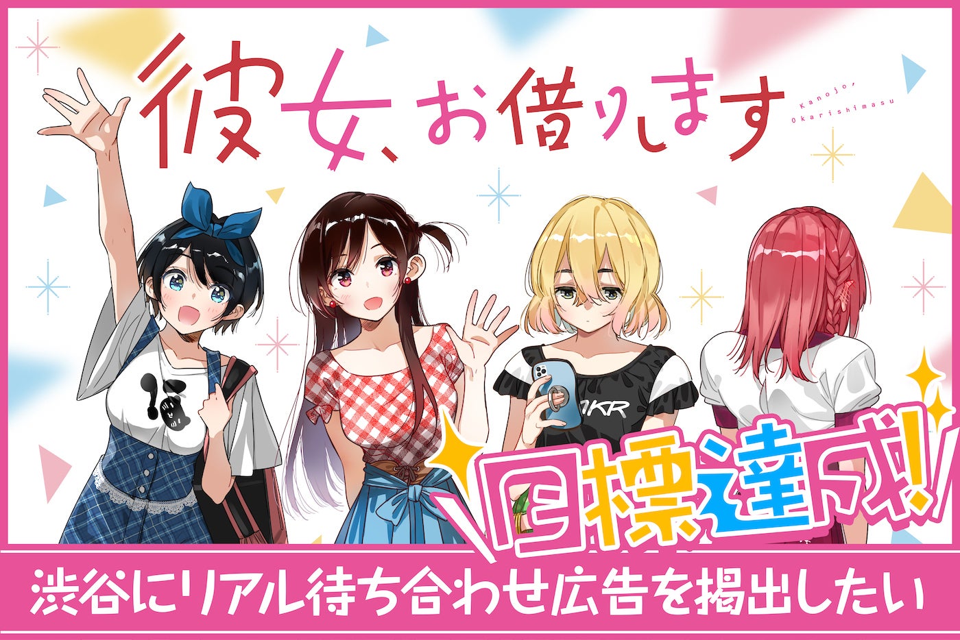 『彼女、お借りします』作者の宮島礼吏です。この度は『彼女、お借りします』のクラウドファンディングにご支援いただきありがとうございます!皆さまからの熱烈なご声援のもと、開始25分で見事目標金額である600万円を突破しました!!!!すべてはいつも『かのかり』を応援してくださっている皆さまのおかげです。本当にありがとうございます。まだこのプロジェクトは始まったばかりです。引き続きお祭り気分を味わいましょう!近日中に支援者限定ブログも開始しますのでお楽しみに!(TwitterやFBなどでこのプロジェクトを拡散して頂けますと幸いです。)※ みなさまからいただいたご意見や要望などは早々に取りまとめて改めてご報告させて頂きます、詳細はこちらのCAMPFIREページやSNSでアップしていくので楽しみにお待ちください。宮島礼吏