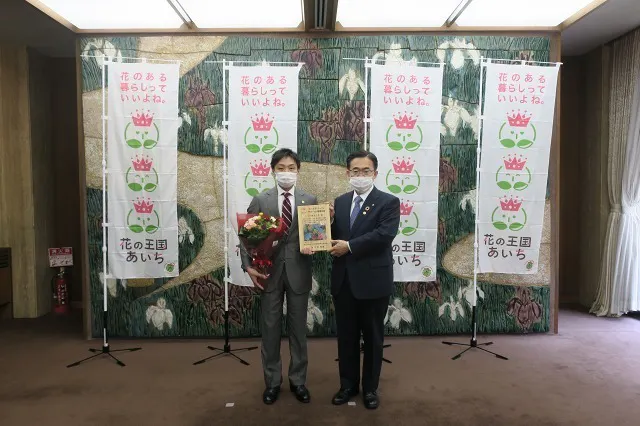 この取組みをご評価いただき、愛知県の大村知事より「花の王国あいちサポート企業」に認定していただきました。