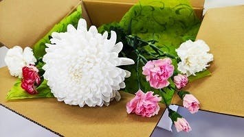 ★冠婚葬祭の自粛等により消費が減少した白い菊を使って、小学校6年生の理科の授業「植物と水の関わり」の授業で「フラワーパレット」を寄贈