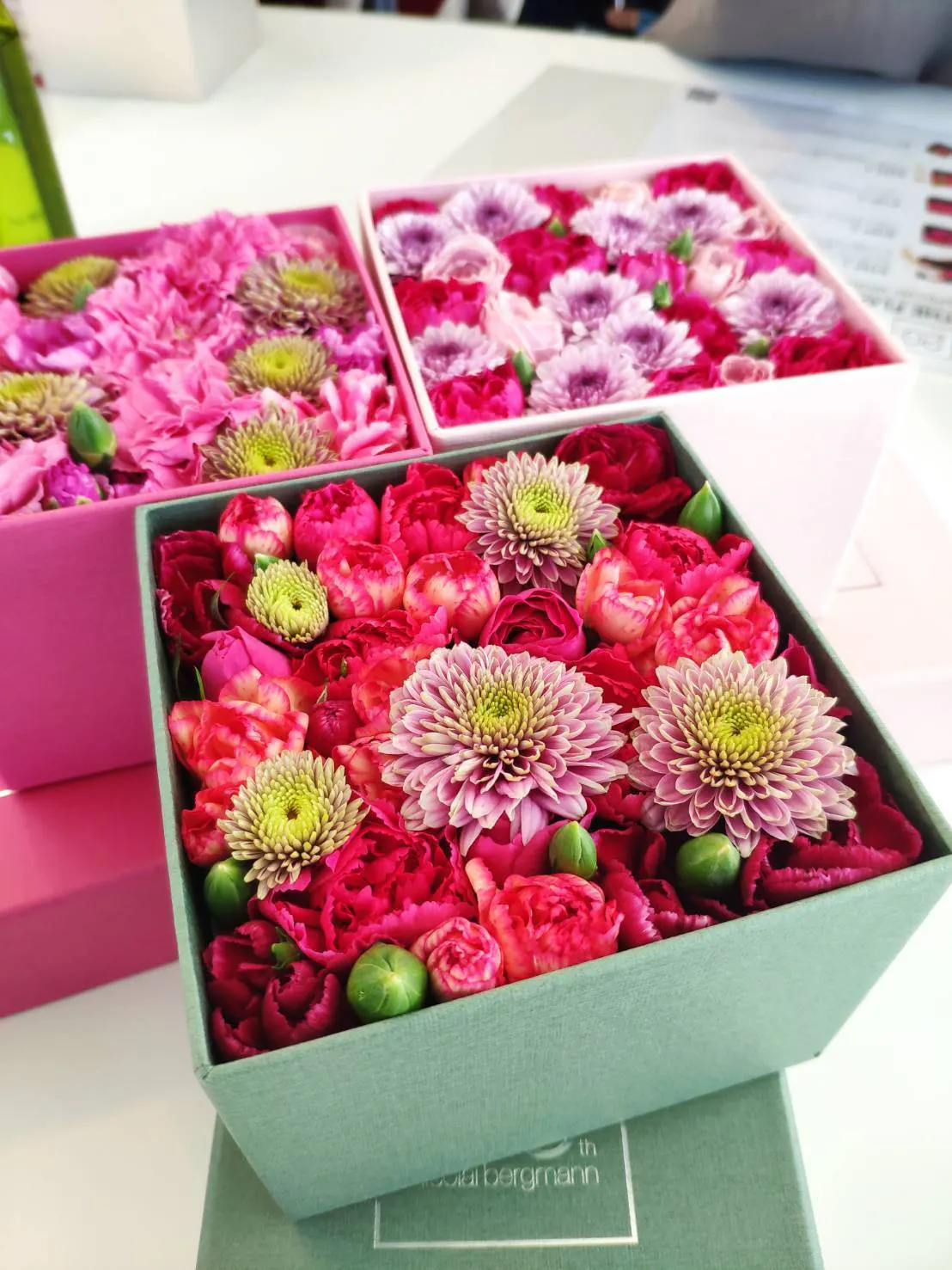 ハウスから切ってきたばかりの新鮮な西尾産のお花を専用の箱に詰めてお届けします。