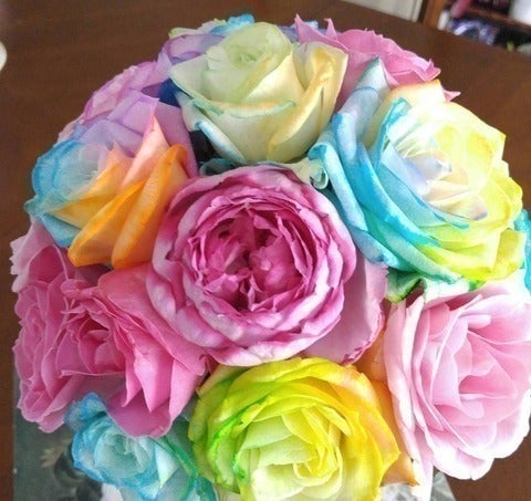 街のお花屋さんで虹色に染まった生花を見かけることがあります。