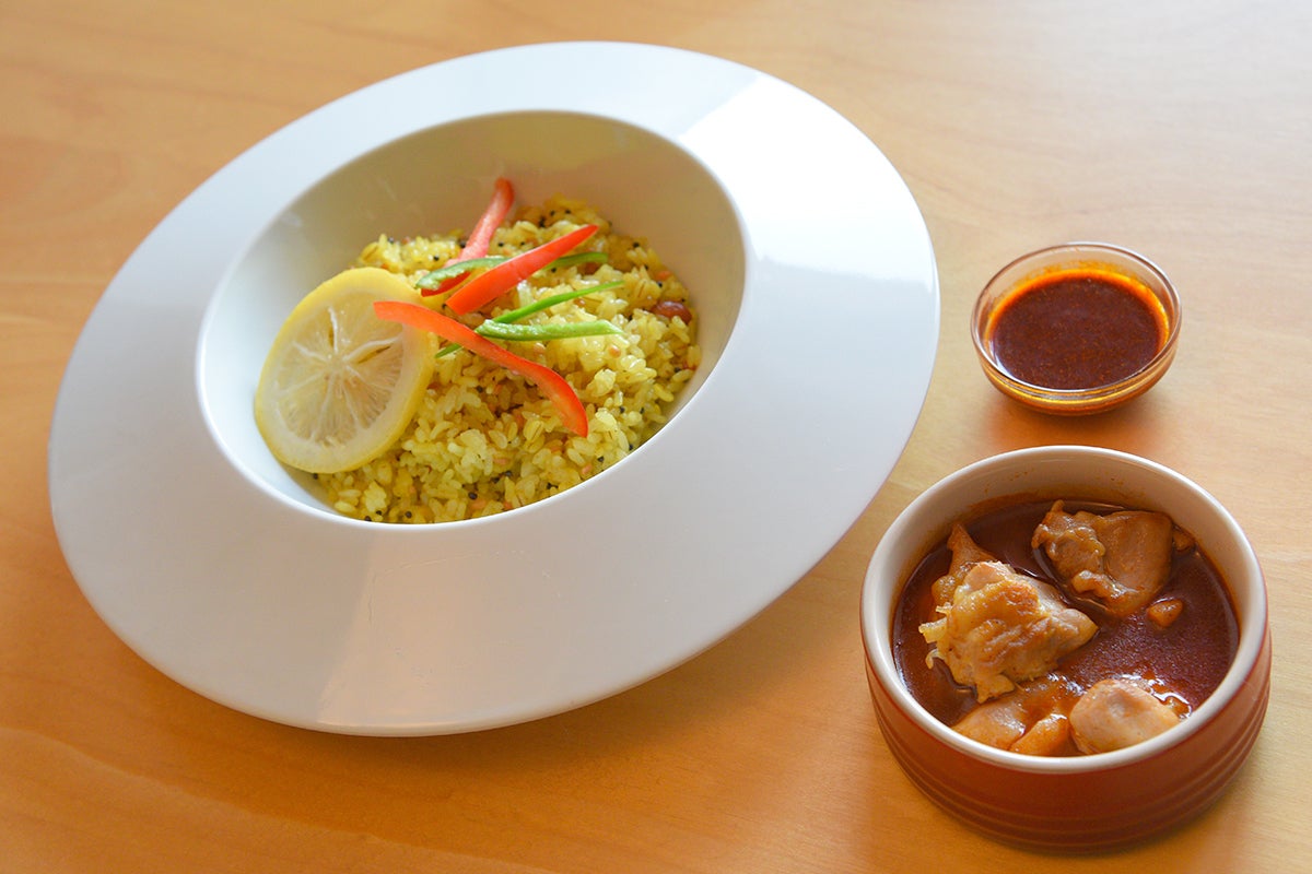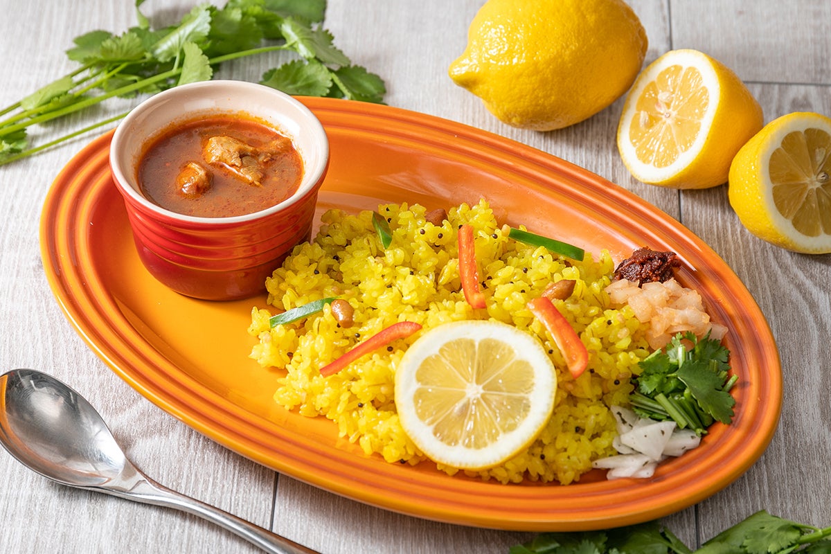 南インド料理の一つで、インディカ米をスパイスやレモン汁と炒めたフレーバーライスのこと。