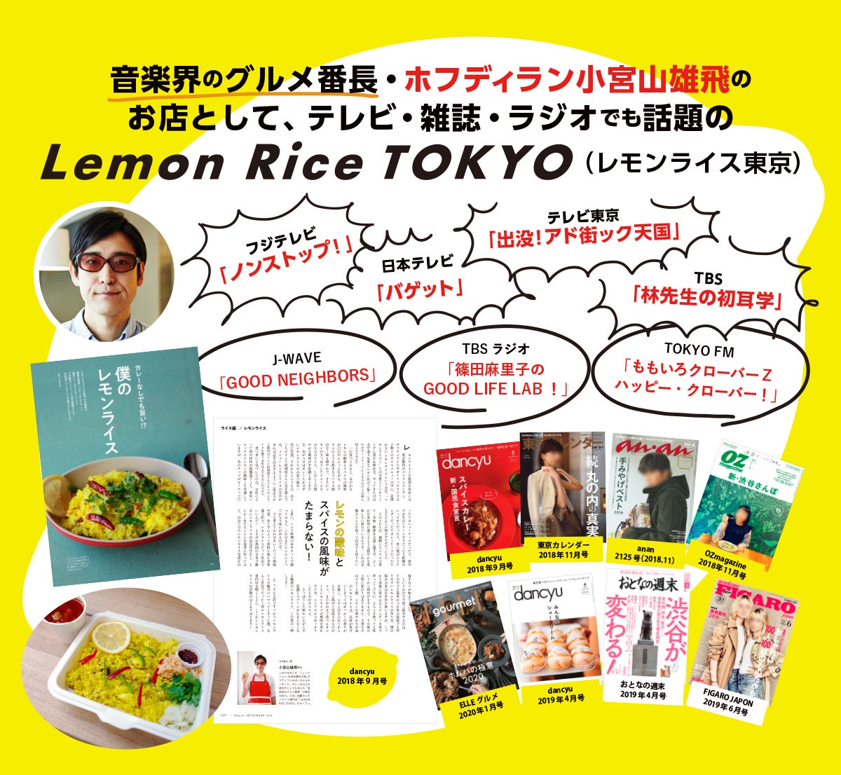 南インドの家庭料理レモンライスを元にして、渋谷の新名物として作ったレモンライス東京のレモンライス。元々たった1坪のテイクアウト専門店として生まれたので、食べたくてもなかなか食べられないというご意見をよくいただいていたので、この機会にぜひ日本中の人たちにおうちでレモンライスを味わってもらえれば幸いです!