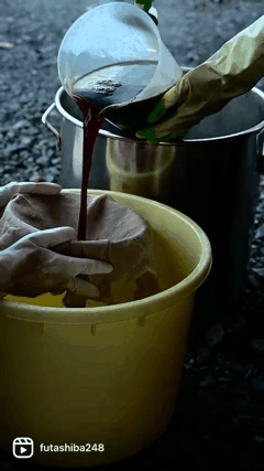 2022/06/07 19:26こんばんは!雨の日が続いておりますが、リターン用Tシャツが染め上がりました染色作業に入る前にまずは染液を作るところから削ったりんごの木をグツグツ煮込んで染液を抽出しますとても甘酸っぱい香り...♪煮込み終わったら少し冷まして濾していきます染液ができたらTシャツを染めていきます白いTシャツに色が入っていく瞬間はとても気持ちが良いですしっかり揉み込んで、色止め後水洗い↑ライトカラーとダークカラーの違いです染め上がったTシャツは順番に発送させていただきます!もうしばらくお待ちくださいませ もっと見る