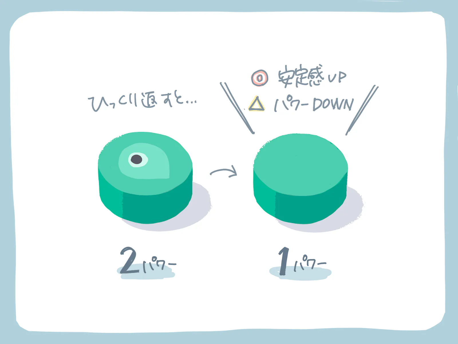 裏にして安全に1パワーをとるか、表のままで2パワーとりにいくかのジレンマがあります。