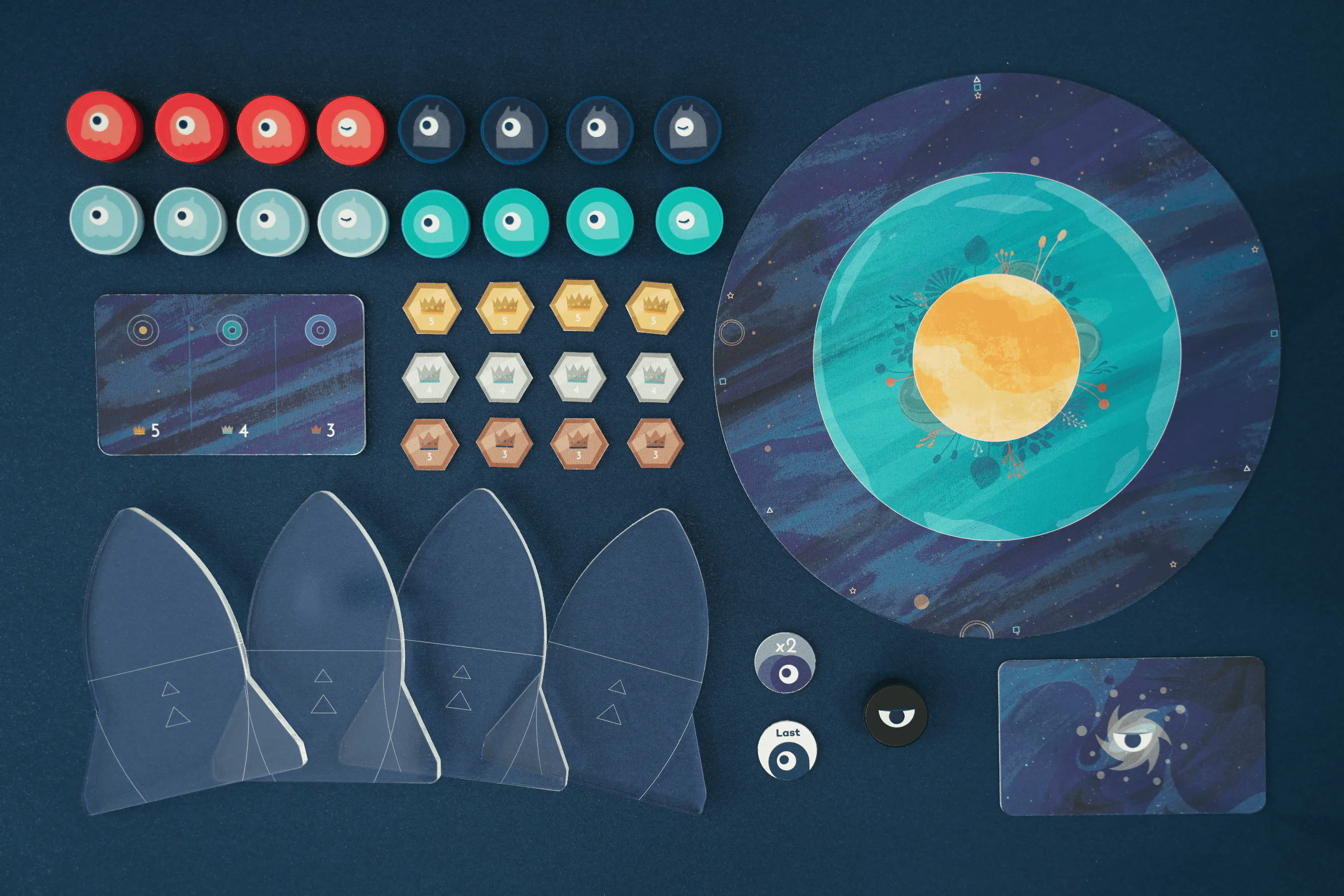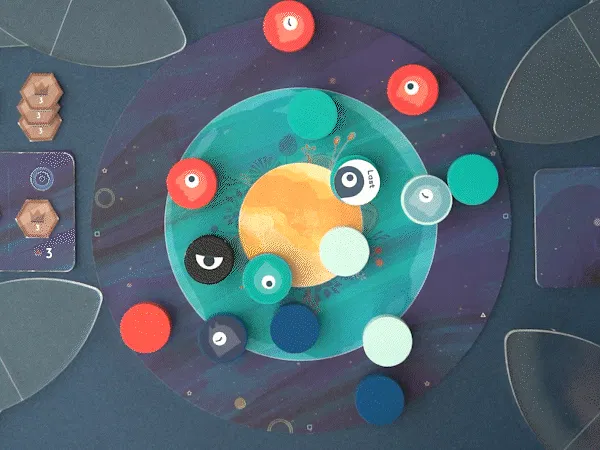 惑星は3エリアあって、1つのコマ=2パワーとして、エリアごとに一番パワーをもっている人が得点できます。