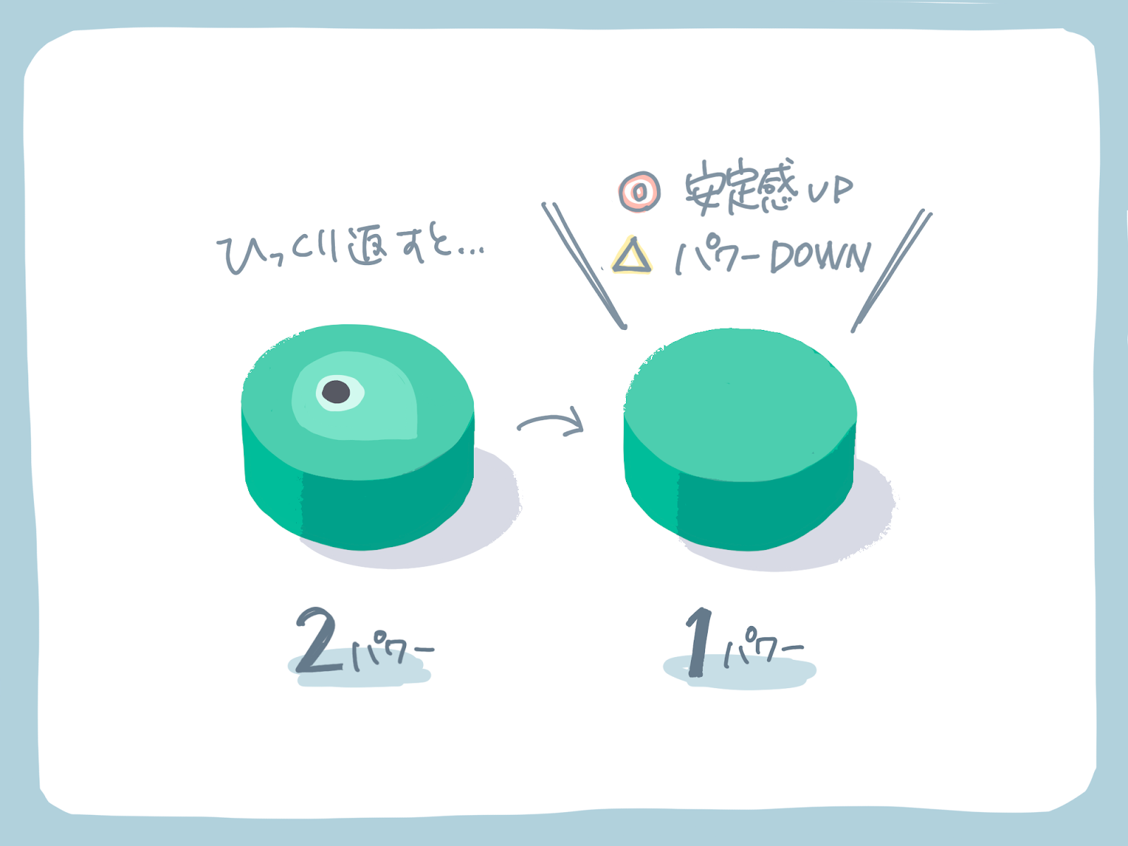 そのかわり、得られるパワーが1になってしまいます。