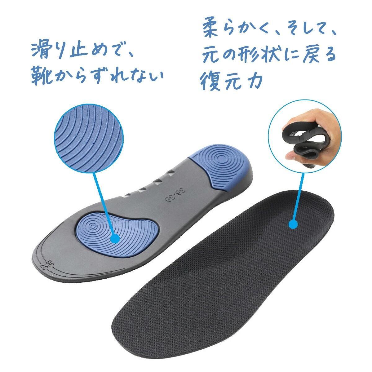 ただ、衝撃吸収インソールのため、通常のインソールよりも、しっかりしたインソールのため、靴によっては、元々靴に入っているインソールを取り出さないと、利用できない場合がございます。