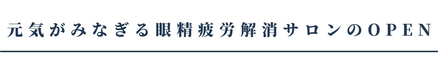 弊社では眼精疲労という課題にいち早く取り組み、そのパイオニアとして眼精疲労解消サロンを実現させ、情熱溢れる人がエネルギーを生み出す場所を作りたいと考えています。