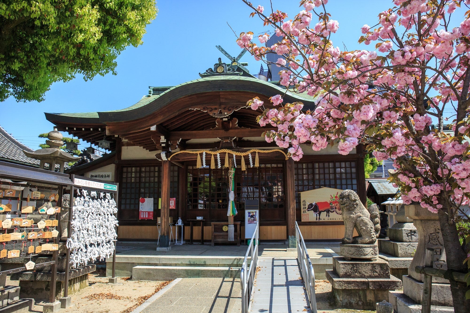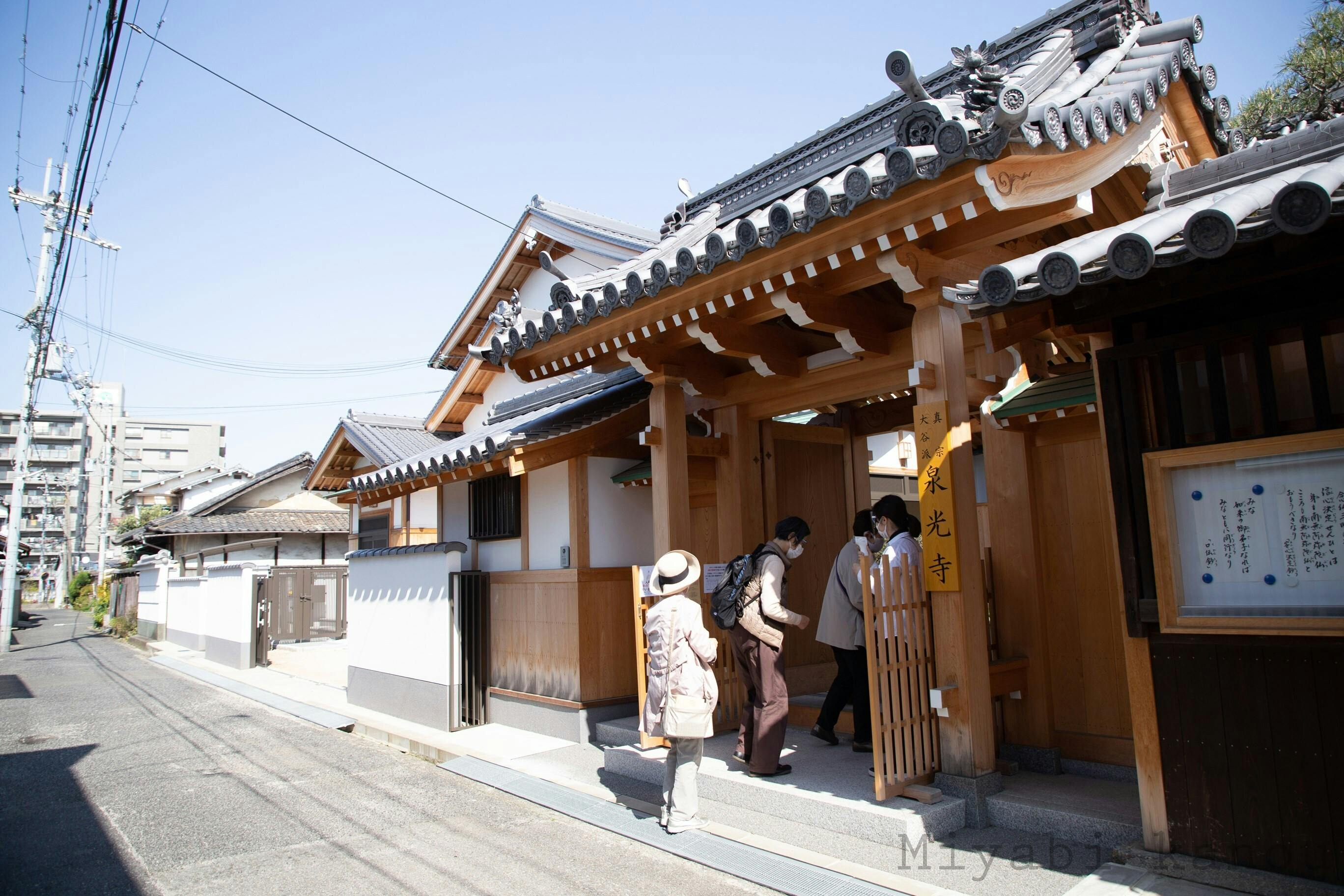 南海電鉄貝塚駅周辺には、神社仏閣が立ち並ぶ美しい街並みが残されています。