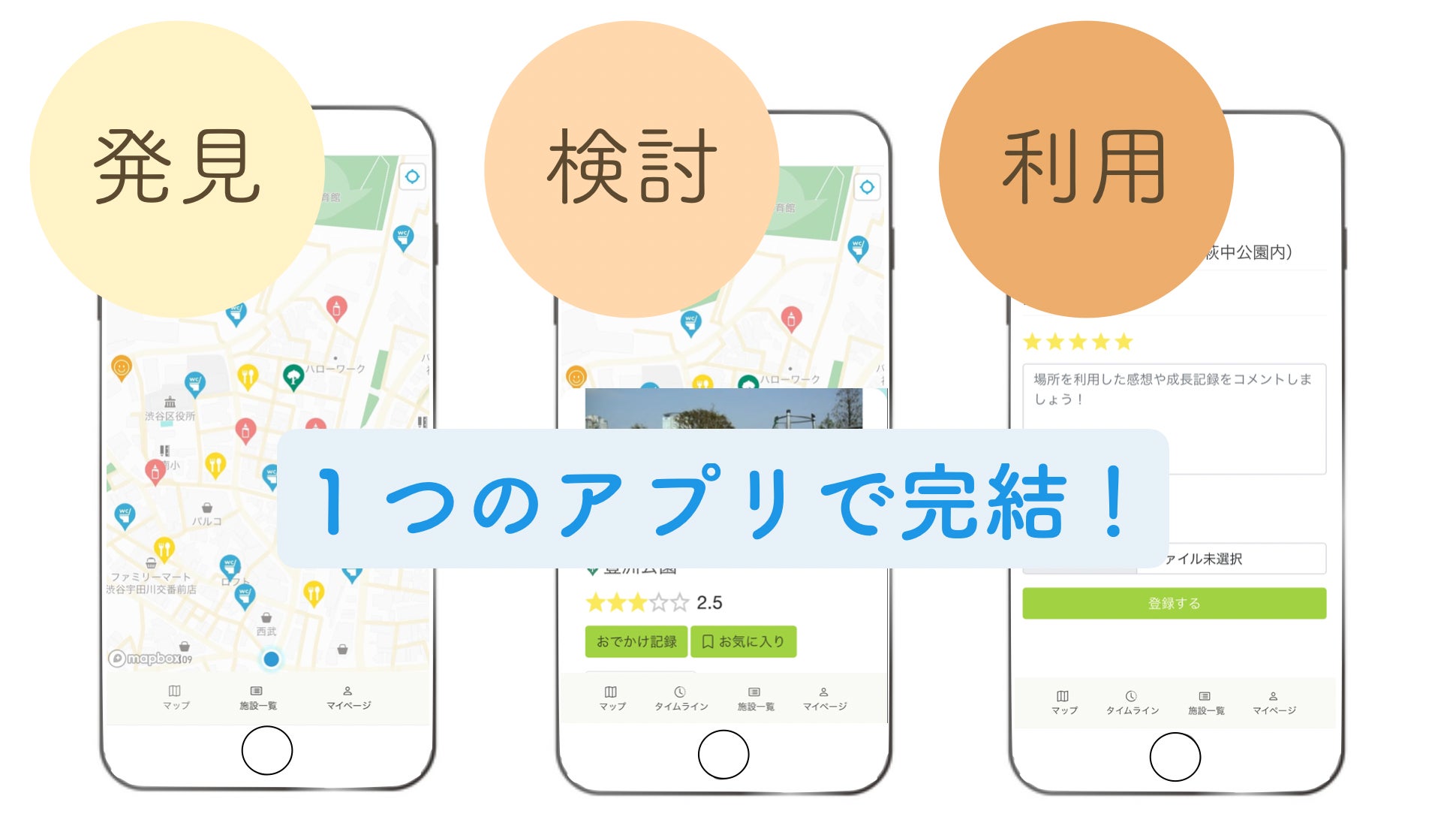 iibaは子連れにいい場所を瞬時に発見し、どんな場所かを知り検討し、実際に利用するまでを1つのアプリで完結できる新しいアプリケーションです。情報を全て地図上で把握できるため、現在地周辺の情報はもちろん、例えば友達と待ち合わせをする駅の周辺情報や、初めての土地へ行く時の情報収集に役に立てると考えています。