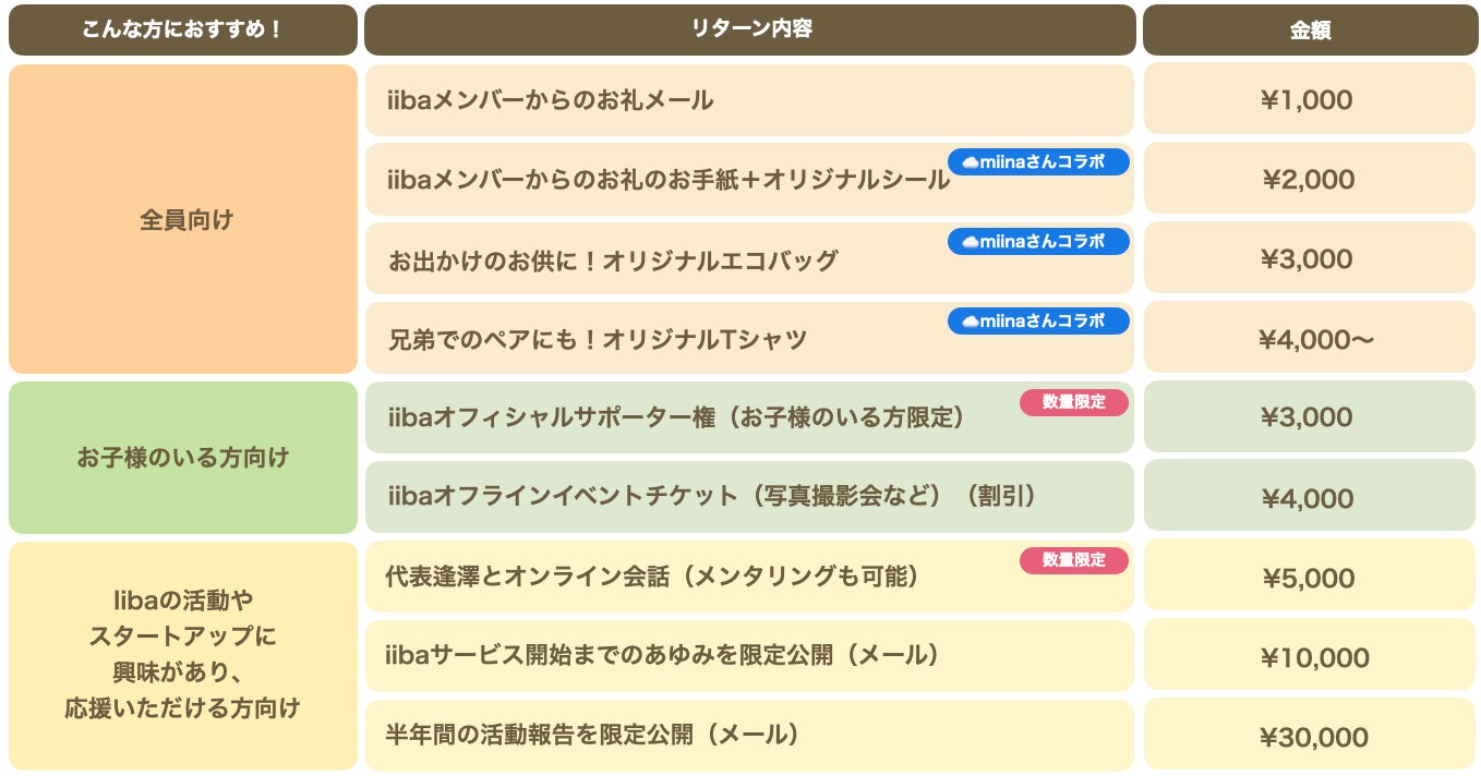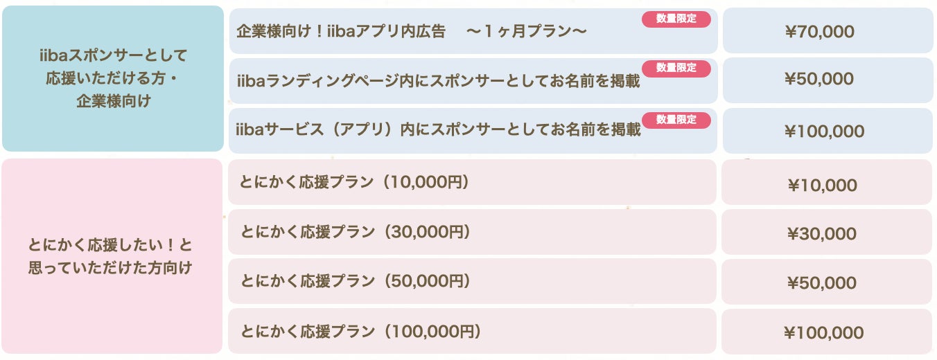 また、ご支援いただいた資金は、これからiibaを作り上げていくための開発資金等に使わせていただきます。