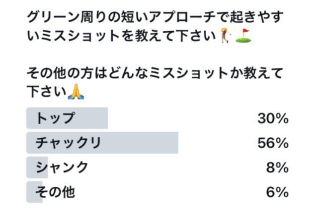 上記は弊社がアマチュアゴルファーの方を対象にグリーン周りでのミスショットでどんなミスが多いのかアンケート調査を行った結果です。