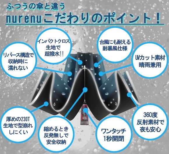 私自身、折り畳み傘を重宝しているものの傘売り場に行ってもなかなか見た目も良く使い勝手の良い理想の傘に出会えずにいた中で開発されたのがnurenuです!