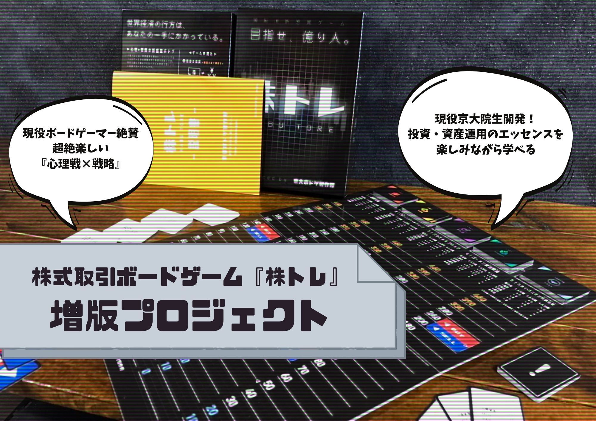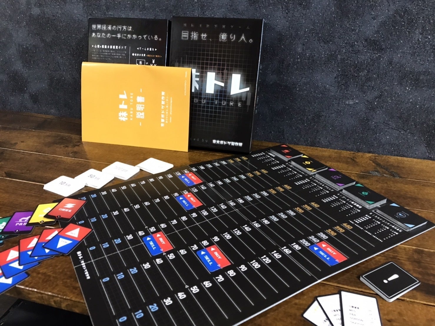 その我々的にも、自分たちが作ったという贔屓目なしに「株トレ」はボドゲとして面白いです。(試作中、楽しくなって夜中の大学の研究室にこもって一晩中プレイしていることもありました笑)