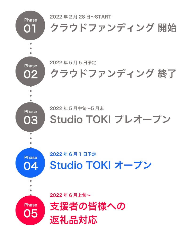 このスタジオをきっかけにクリエイター達が交流し、多くの人が配信や撮影を楽しめる場所を想像するとワクワクしてきます。 ぜひ私たちと一緒に「StudioToki」、そしてクリエイター業界を盛り上げましょう。皆さんのご支援をお待ちしています!