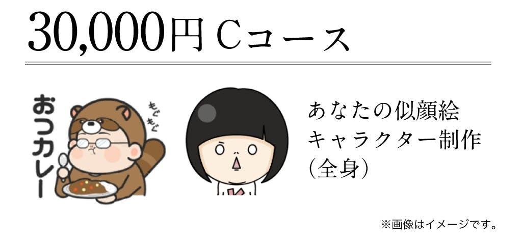※上記は弊社の過去制作イメージです。いただいた写真データ(3~5枚)を元に似顔絵キャラクター(全身)のデザイン制作を行います。形式はpng、jpegデータでの受け渡しとなります。商用利用は可能です。