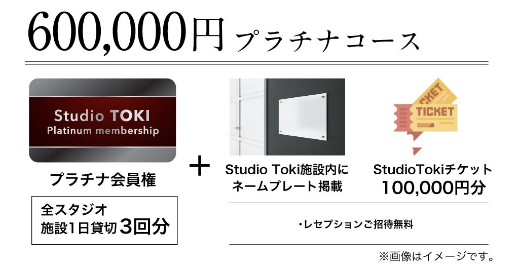 ※Studio Tokiチケットは、有料のレンタル機材、オペレーター利用料などオプションに使えるチケットです。