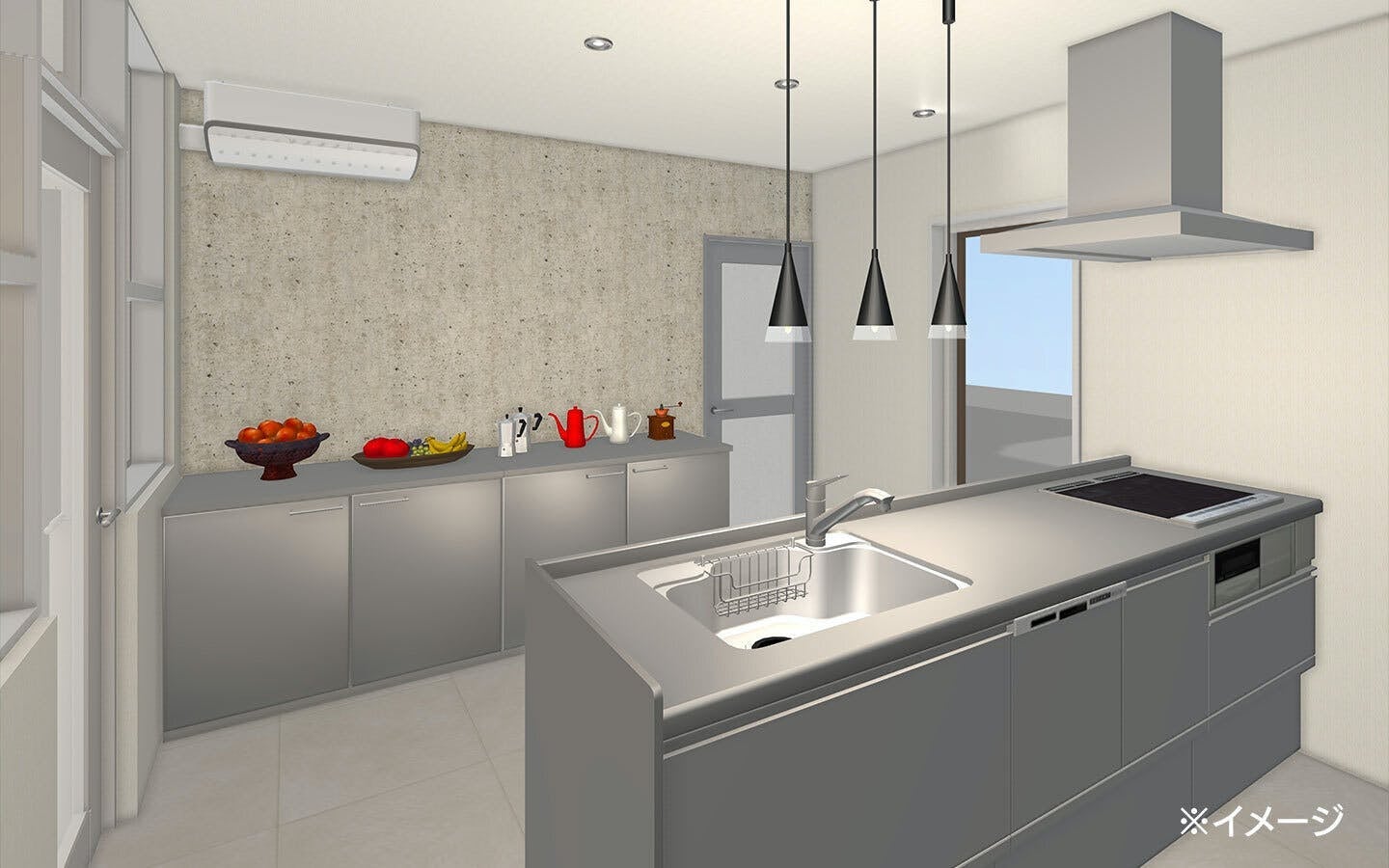 過去の映像制作経験から、魅力ある料理動画が撮影できる、動画撮影に適したキッチンスタジオを目指しました。おしゃれで機能性の高いキッチンカウンターで、人気の料理動画でもよく使われている手法である、上から手元を撮影ができるようにもしています。
