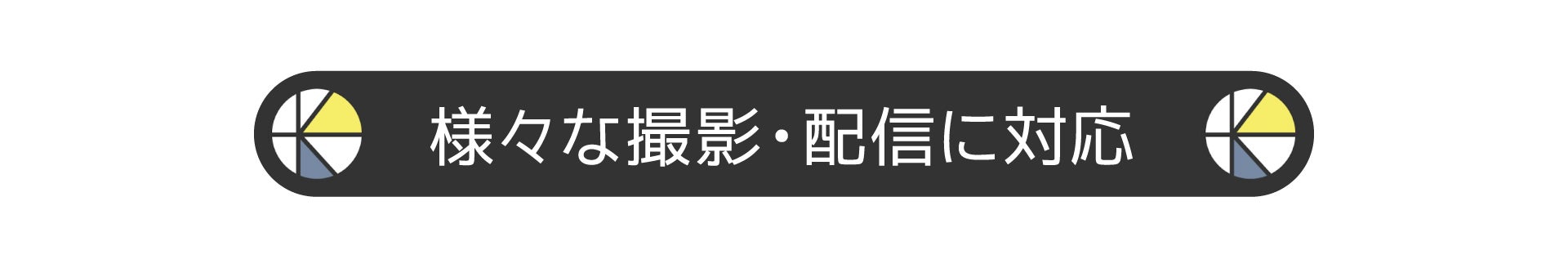 企業・団体のプロモーション活動や、最近話題のライブコマース、オンラインセミナーなど、通信環境で失敗したくないイベント時などにもおすすめです。クロマキーもあるのでお好みの背景を合成したライブ配信ができるんです。もちろん、通常のスチール・ムービー撮影にも使用できます。