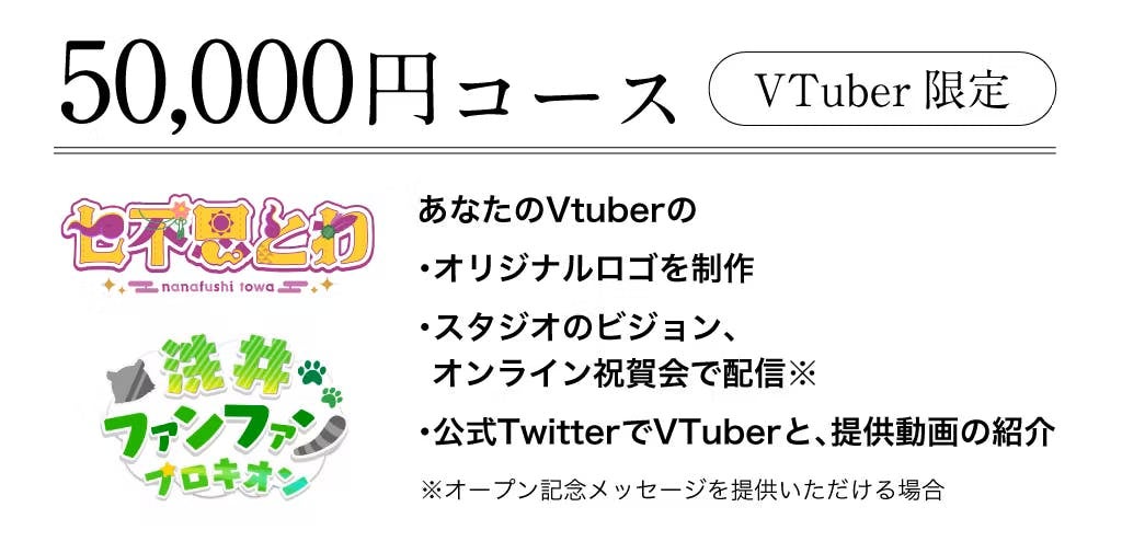 ご支援者さまが所有するVTuberのオリジナルロゴを制作します。提案に対する修正は2回まで対応、納品後の修正対応は不可。デザインのご相談及び、納品は5月以降の順次対応となります。納期についてはご相談をください。
