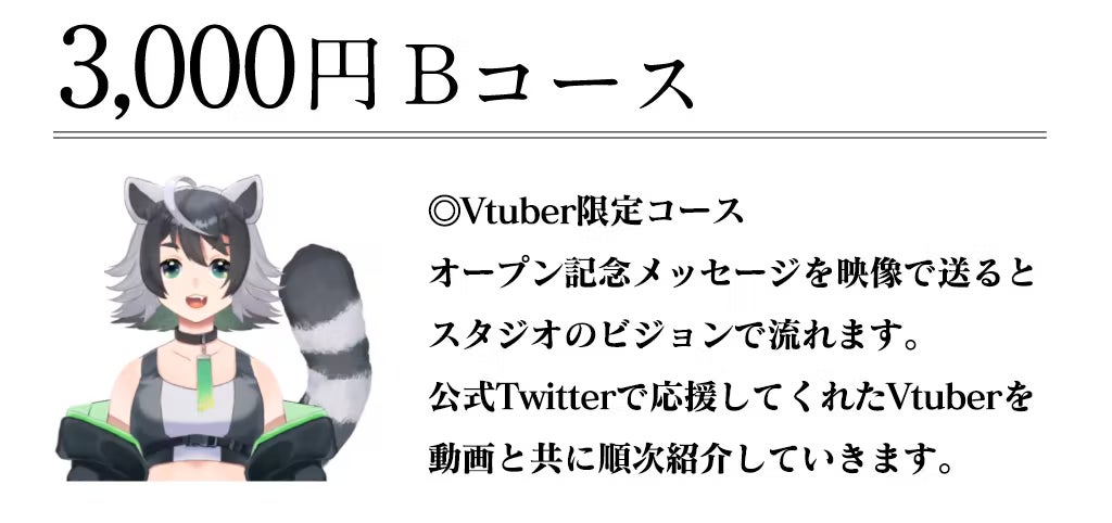 ※支援者の皆さまから15秒程度の動画素材(MP4データ)を提供いただき、スタジオオープン時から6月30日(木)まで、施設内ビジョンでの映像配信、そして「StudioTOKI」の公式Twitterで提供動画と共にご紹介します。支援者様は施設の公式Youtubeチャンネルで紹介する際に必要となるアカウント名などを教えていただくこととなります。ただし、この目的沿わない動画については、紹介を控える場合があります。