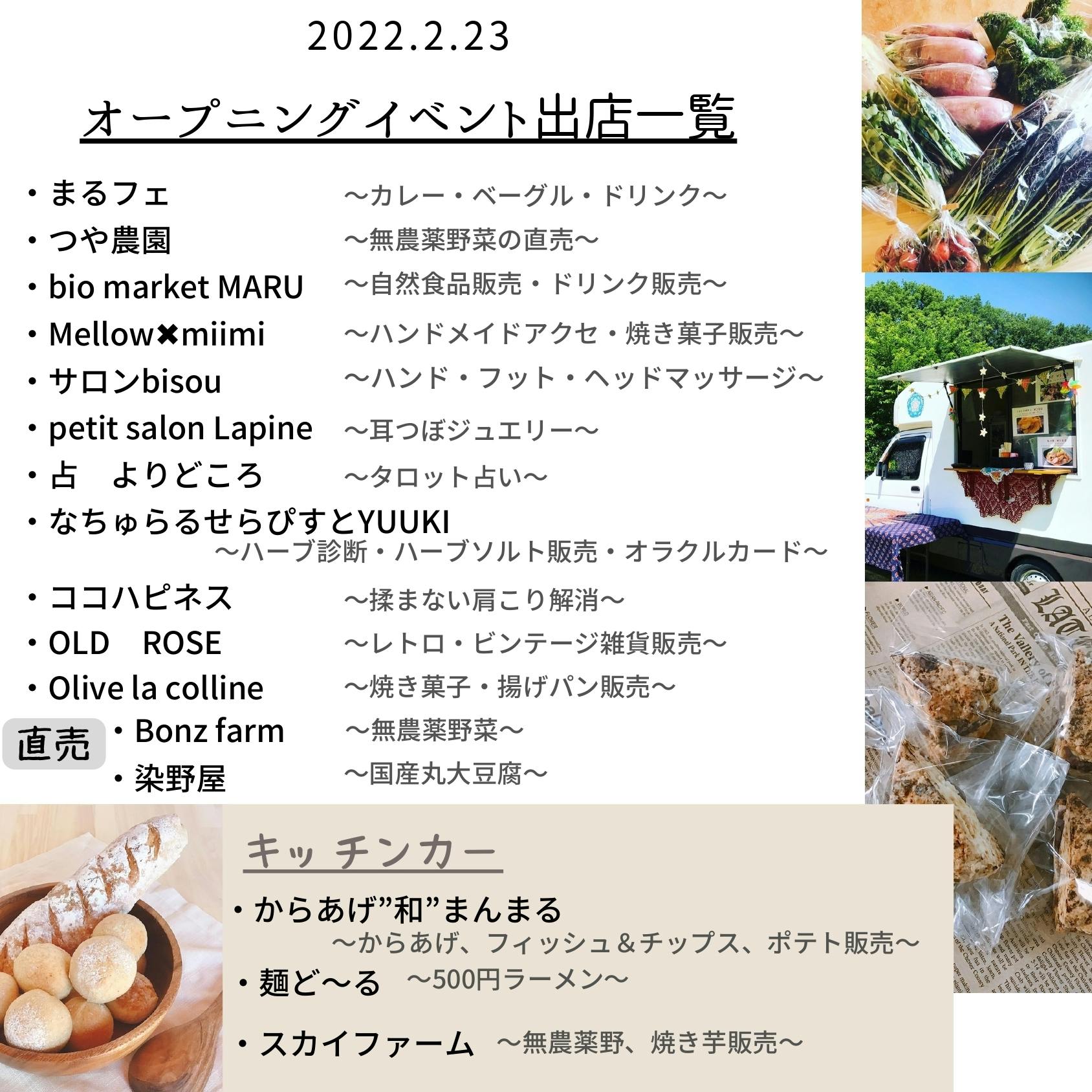 23日(水・祝)にはオープニングイベントとして既にたくさんの地元のお店・地元の方にご協力いただいております!トップ画像に詳細を載せていますのでぜひご確認ください!