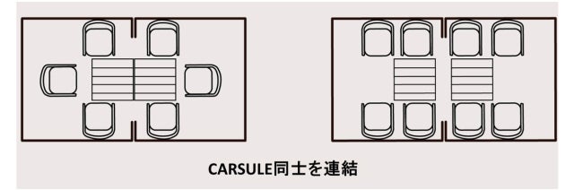CARSULE同士を繋げて使用することが出来ます。仲良しのお友達家族と一緒にCARSULEを購入すれば、繋げて長さ4mの広々空間でくつろぐことができます。